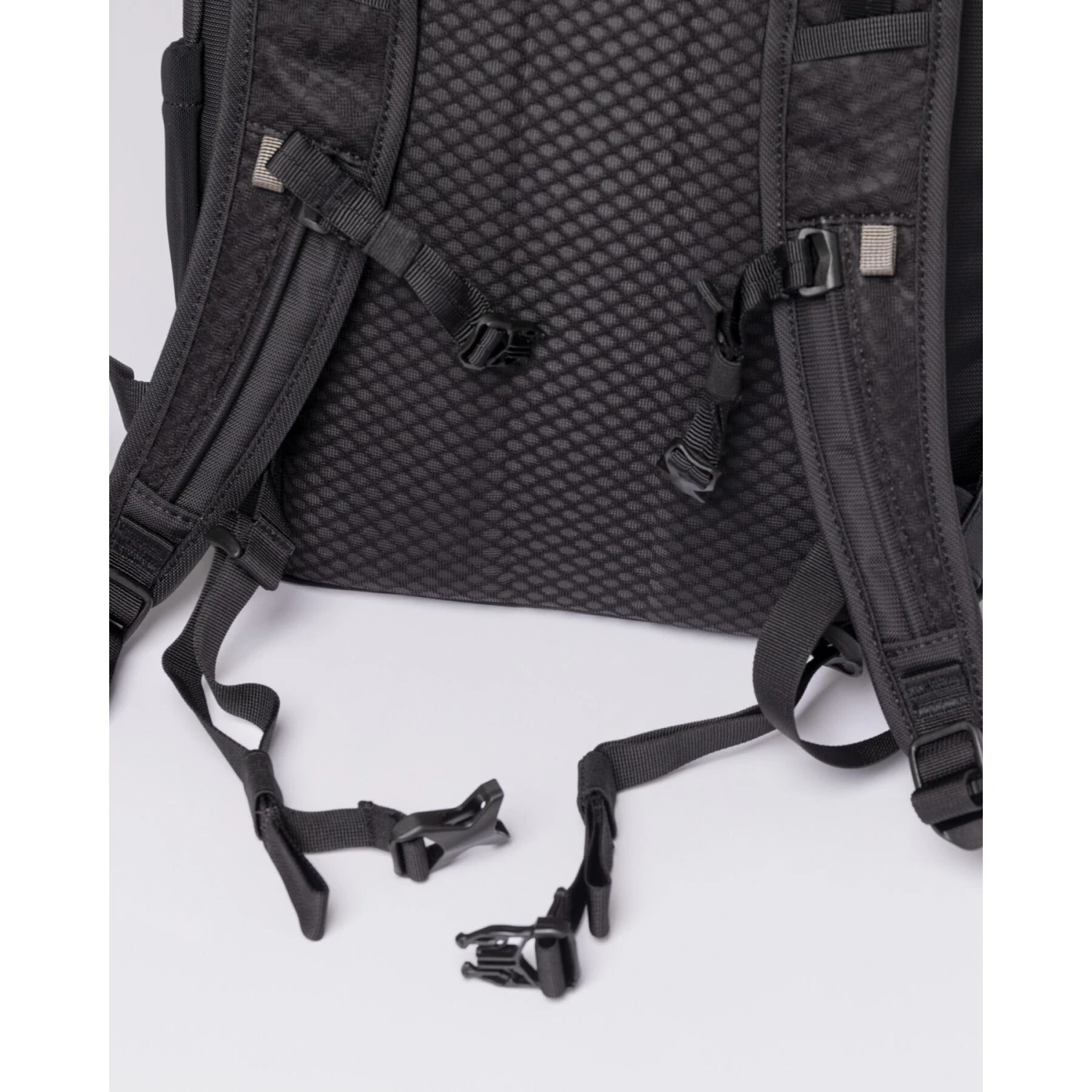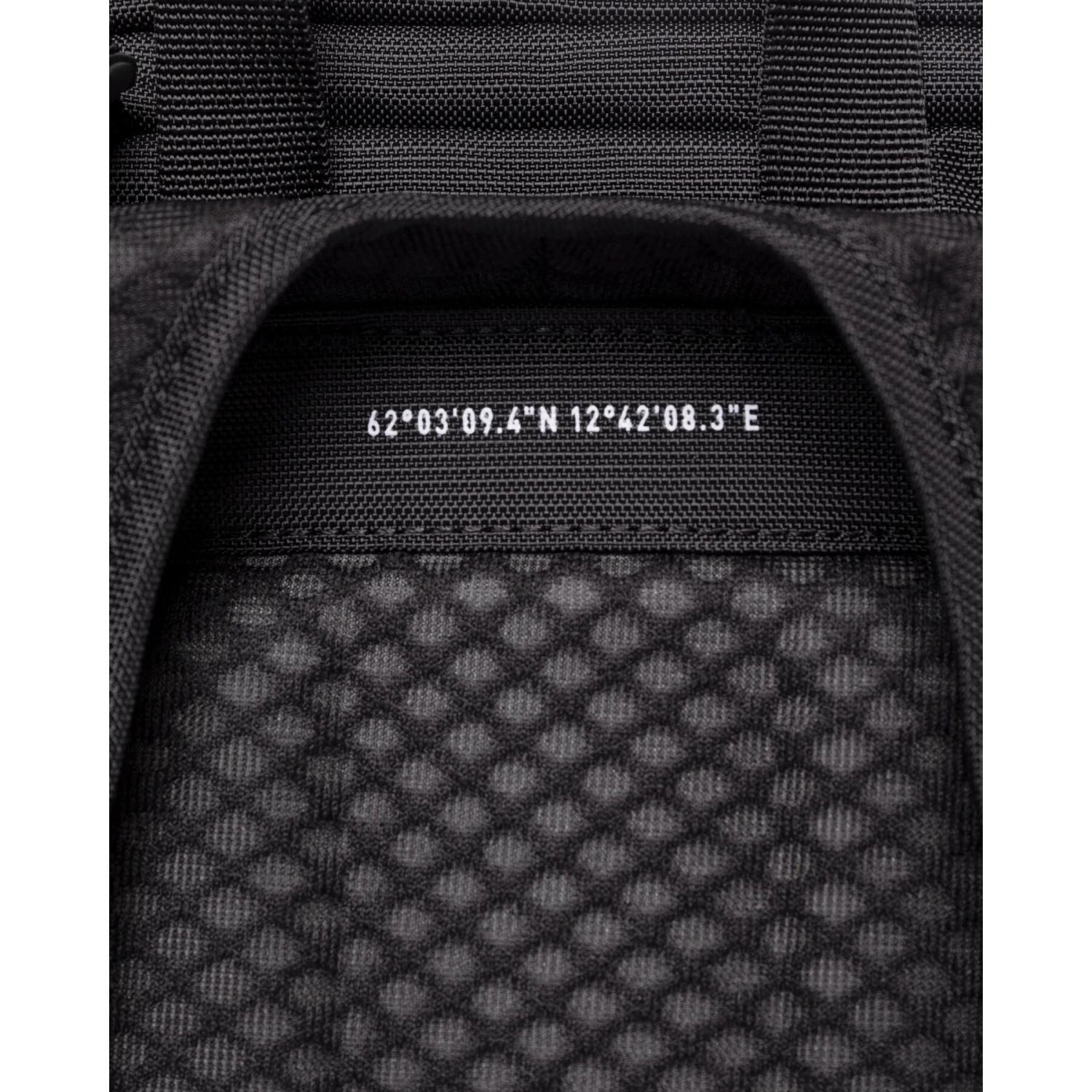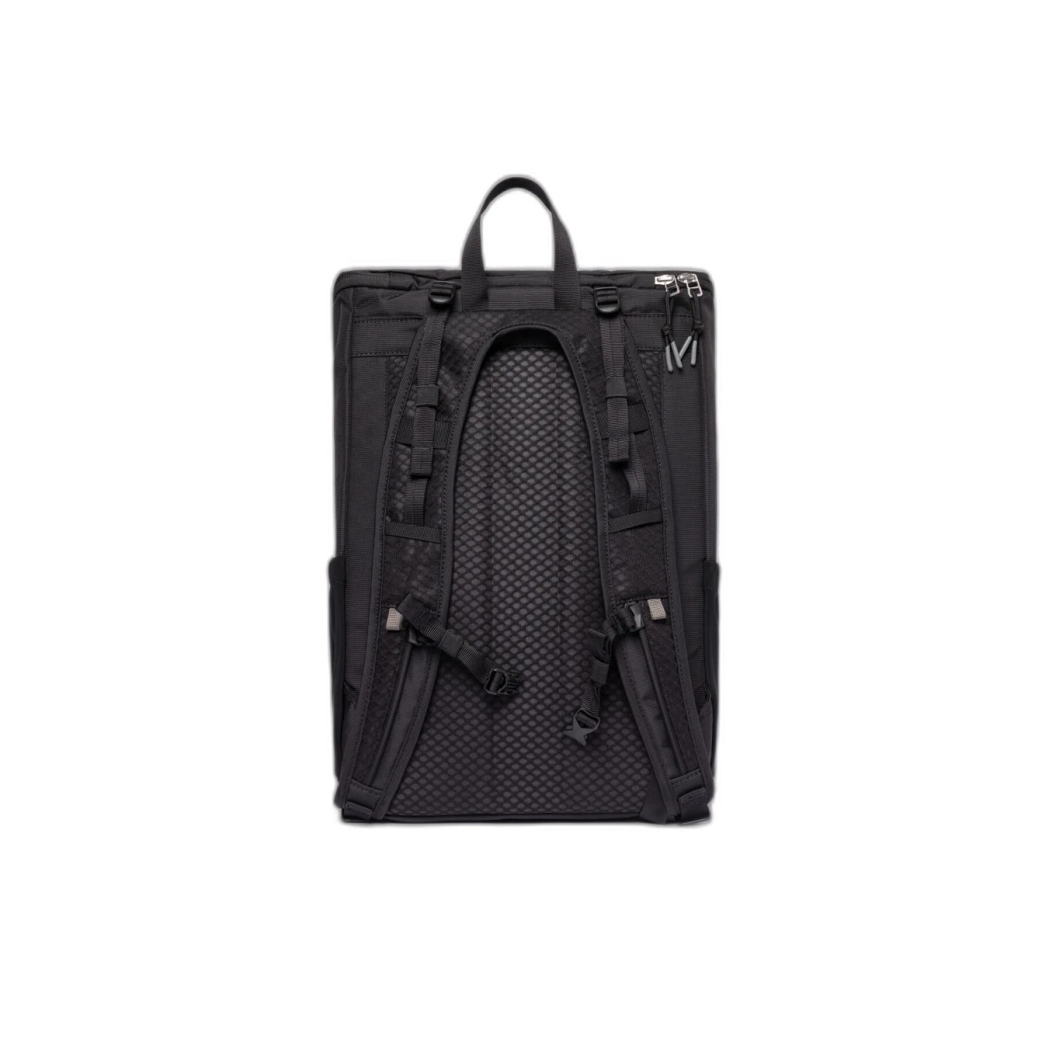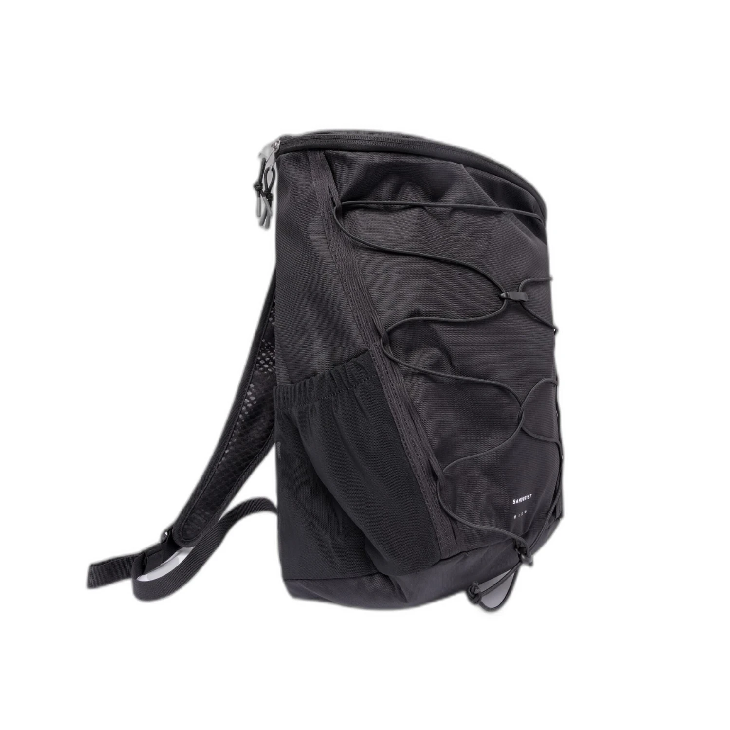 Zippered backpack made from water-resistant nylon 100% recycled material. Carries 17 L, includes 16″ laptop pocket, drawstring details, top zipper, elastic mesh side pockets and removable hip belt.