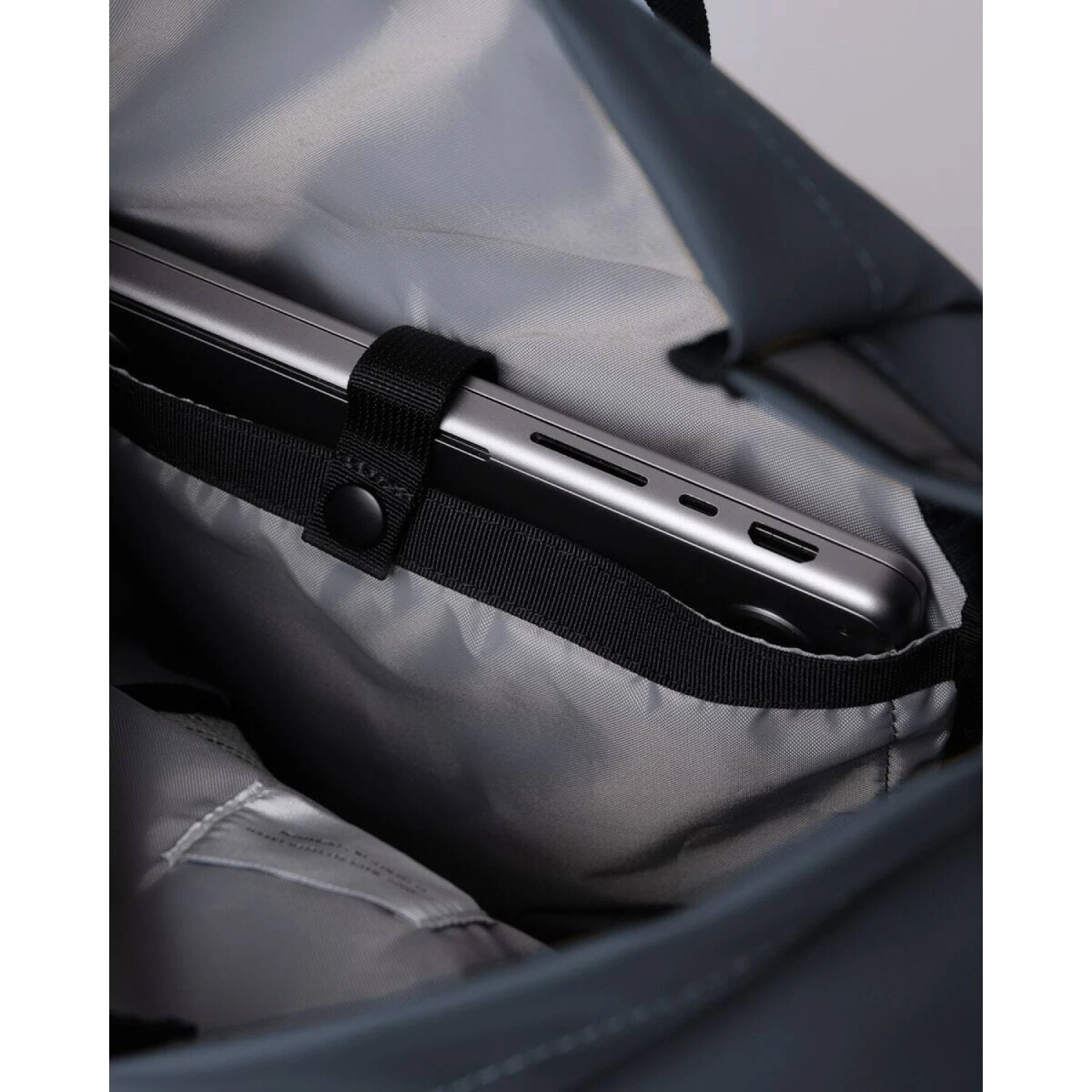 Made from recycled polyester with a waterproof thermoplastic polyurethane (TPU) coating. The weave is tight and dense, originally designed for bulletproof vests. The lining is made from 100% recycled polyester and the trim is produced from recycled webbing. Please note that the bag is water-resistant, but not completely waterproof…
