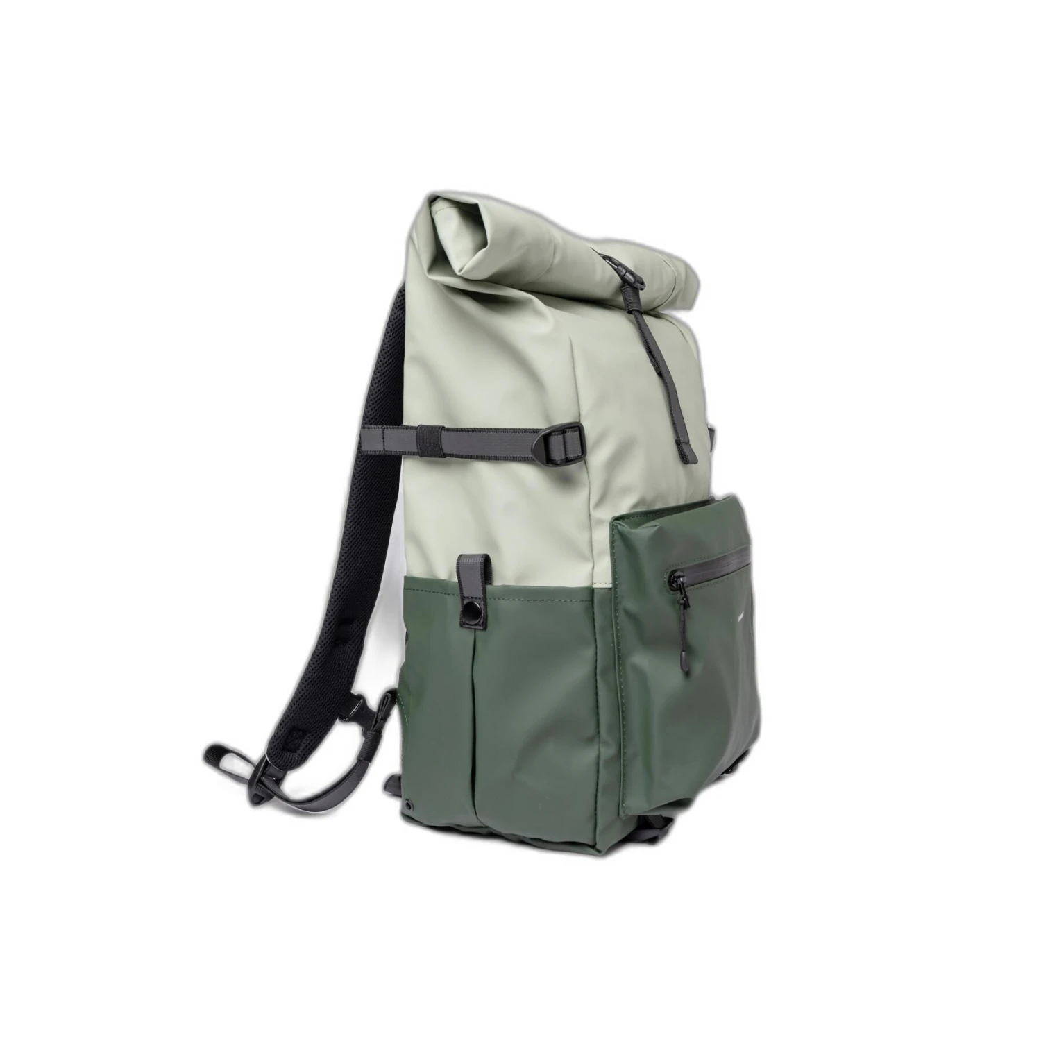 Water-resistant backpack in recycled polyester with waterproof TPU coating. It can carry 18 liters, has a 13″ laptop compartment and YKK® AquaGuard zippers.