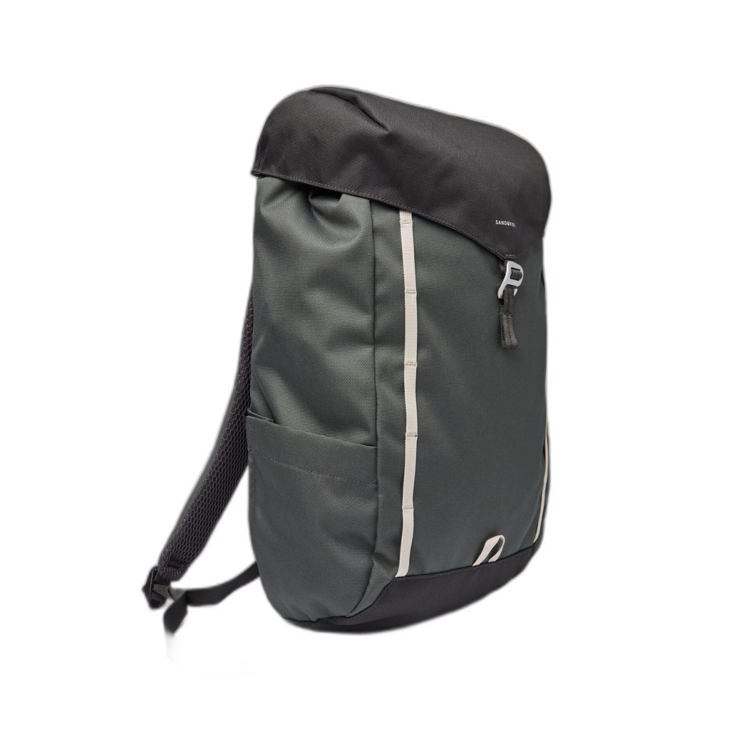 Water-resistant backpack made from 100% recycled polyester. Features a 16″ laptop compartment and can carry up to 19 L.