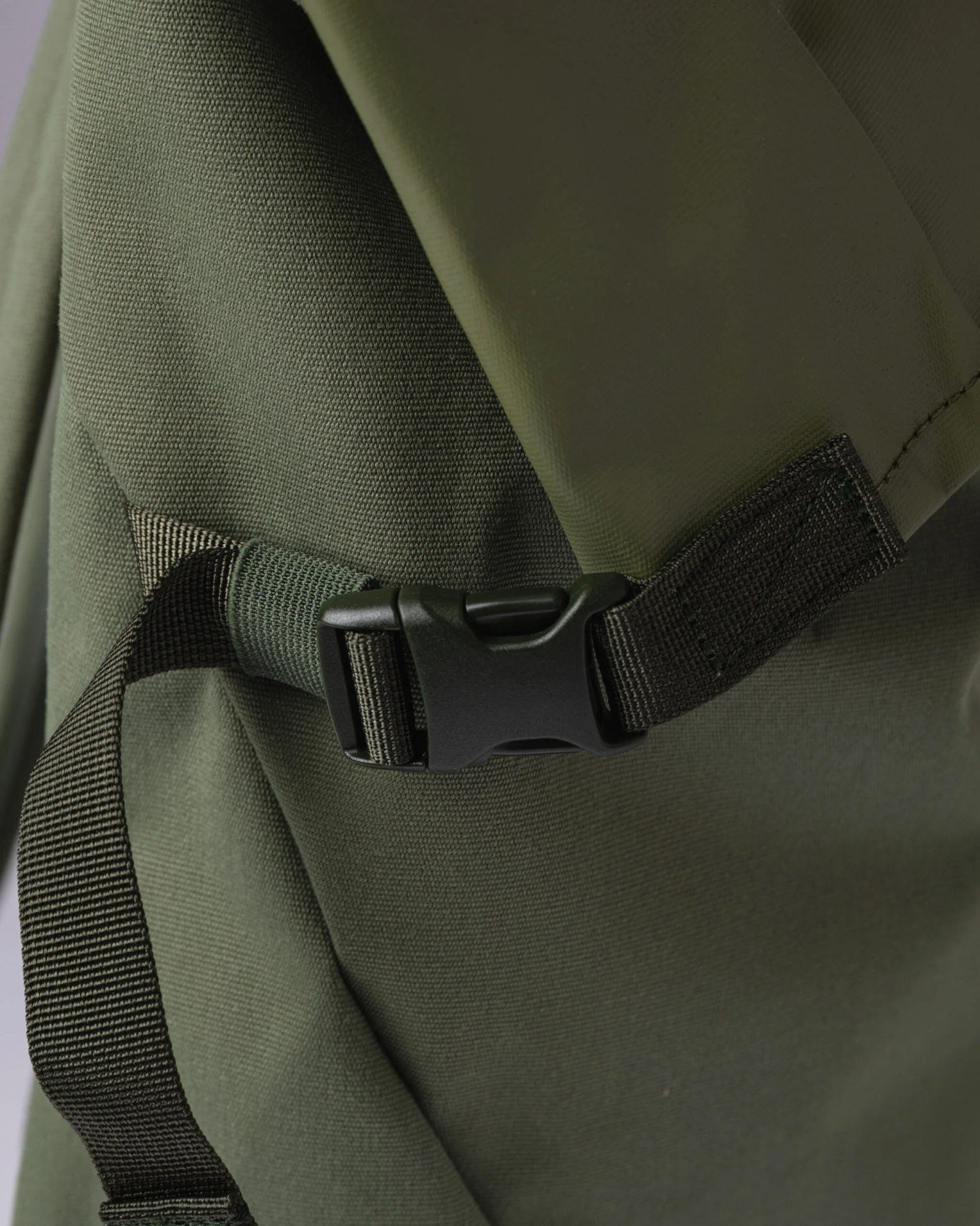 Rolltop backpack made in 100% recycled polyester with a waterproof TPU coating. It features a 13″ laptop compartment and a rolltop and buckle fold top. Functional and with a minimal yet stylish approach to design, this backpack is perfect for your everyday commute.