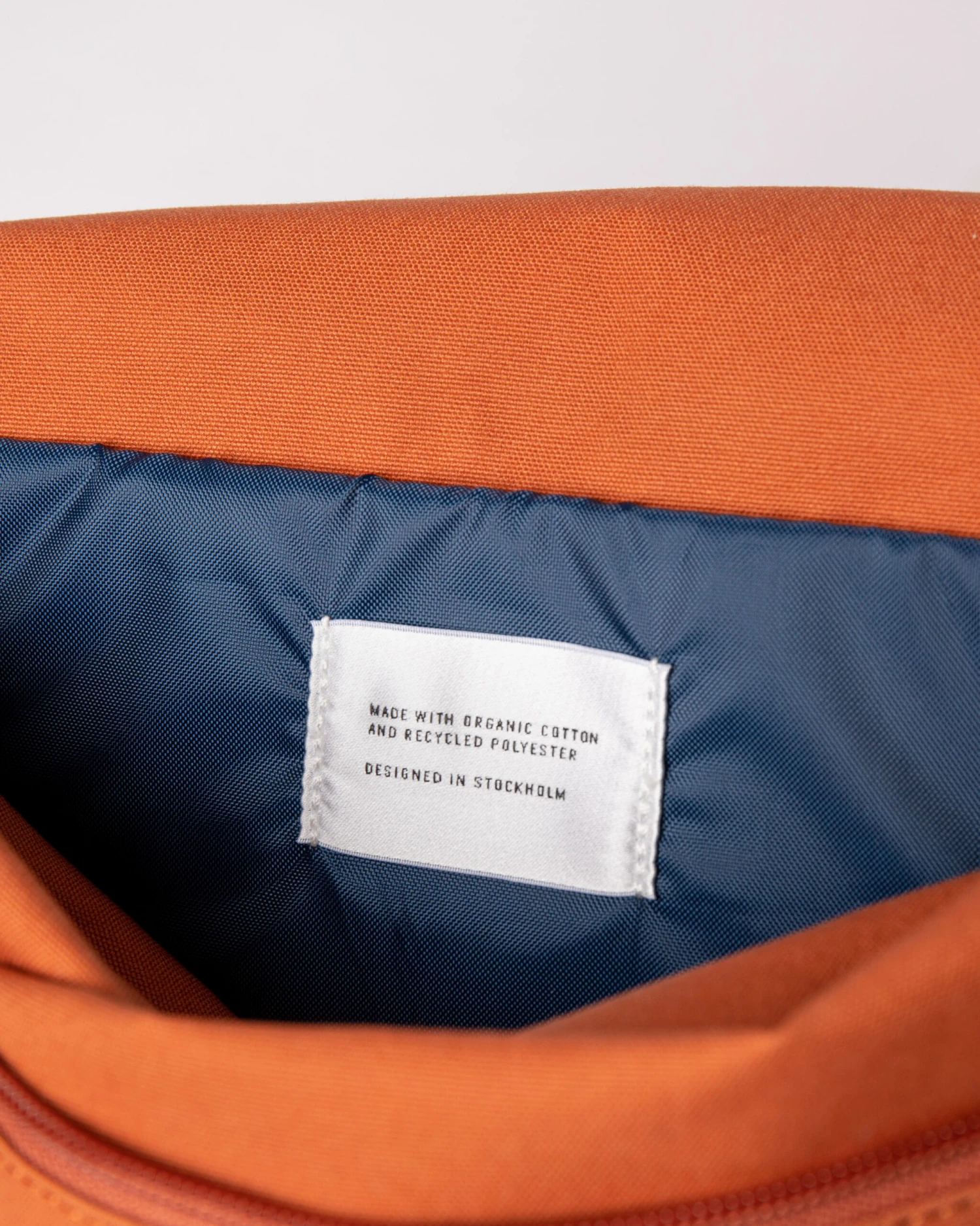 Rolltop backpack made from organic cotton and recycled polyester, featuring a 13″ laptop compartment and lid closure with a water repellent coating.