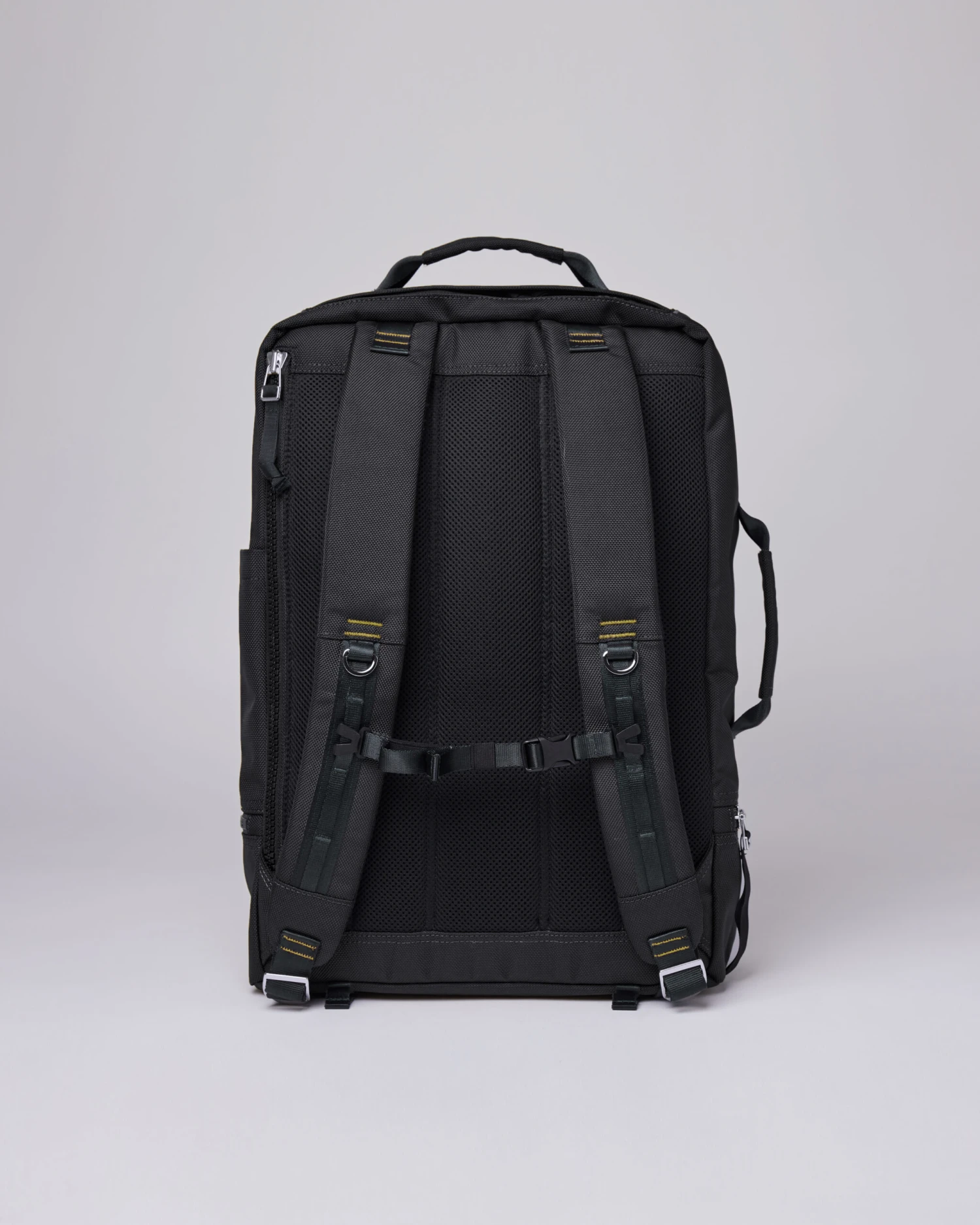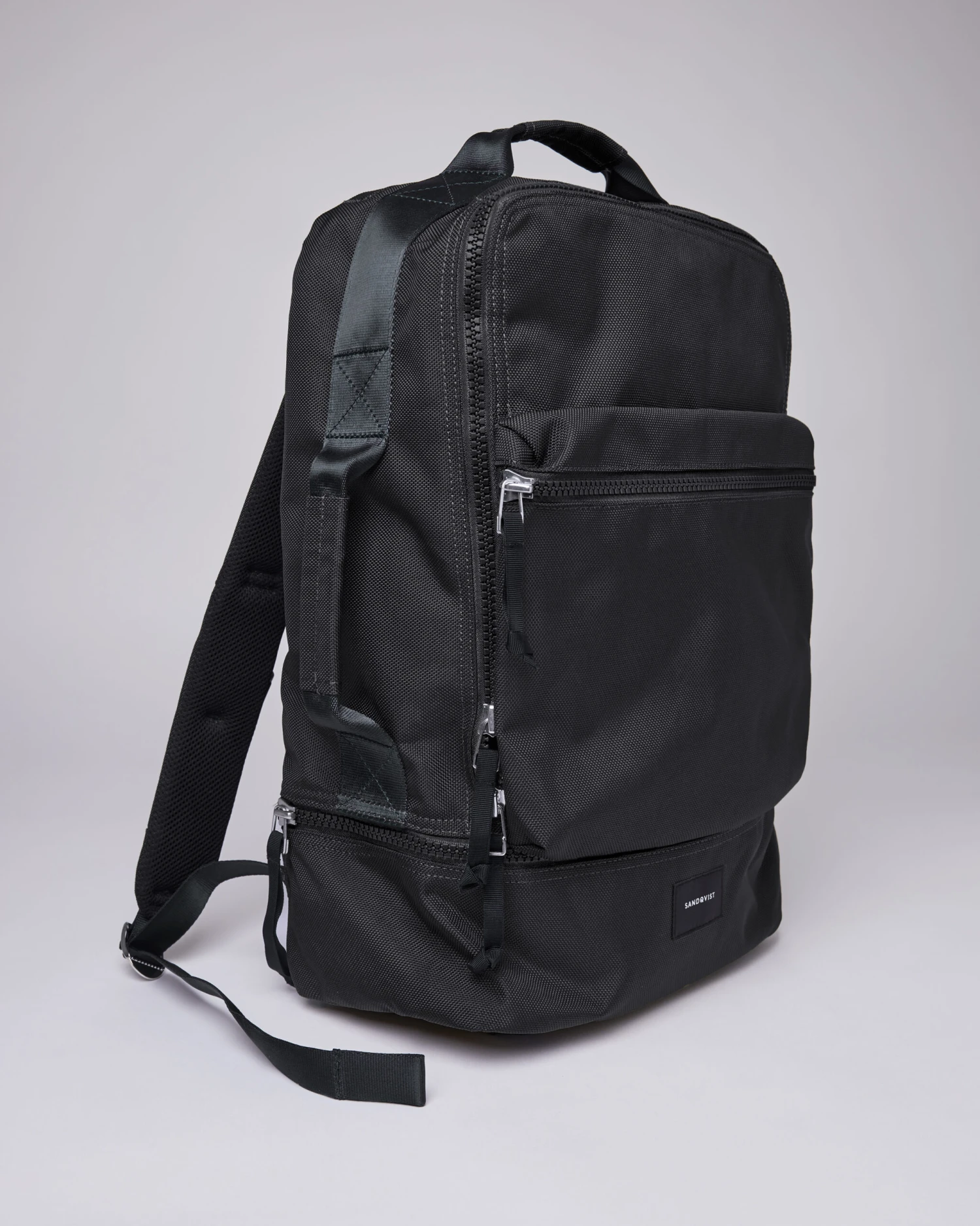 This updated version of our water-resistant and functional backpack from our Travel series is constructed from recycled polyester. It features a 15″ laptop compartment, a shoe compartment and can carry up to 24 L. Here updated with a side slip pocket, compression straps on bottom and hidden pocket on the back. A vegan backpack where utility and function are key.