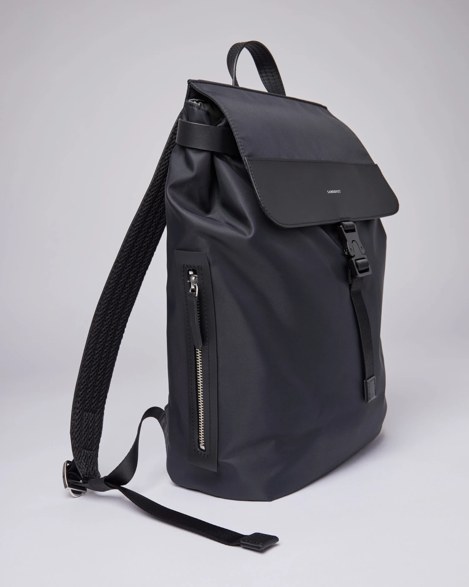 This is an update of our classic backpack from our Everyday series, here made with 100% recycled nylon. It can carry up to 8 L and is updated with a front snap buckle closure for a modern and updated look. The inner laptop compartment fits most 13″ models. A great backpack for work and leisure, matching both your dressed and casual outfits.
