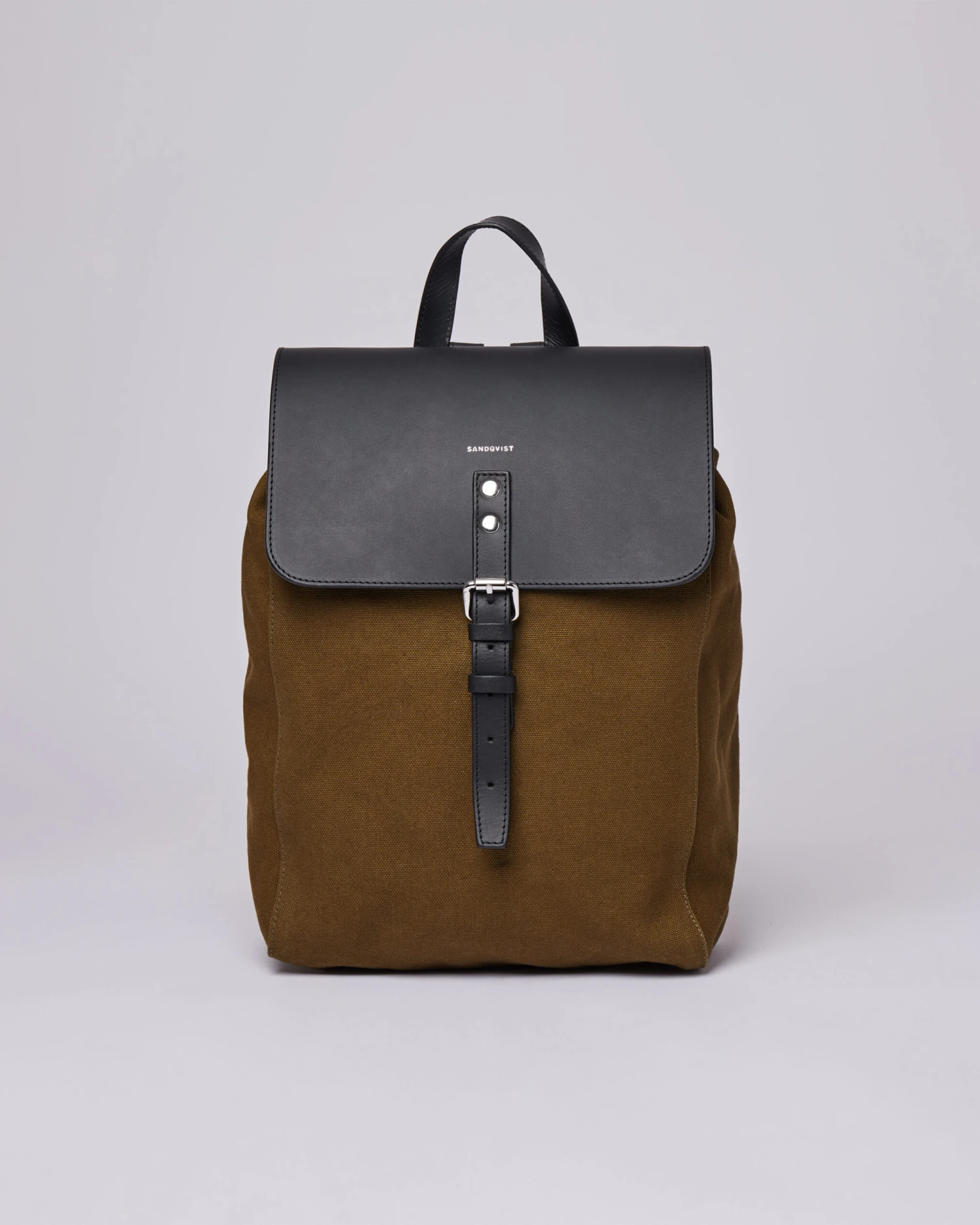 This high-quality backpack from our Classics series is made with organic cotton canvas and high-quality leather and can carry up to 8 L. The front roller buckle closure lends an elegant and timeless look. The inner laptop compartment fits most 13″ models. A great backpack for work and leisure, matching both your dressed and casual outfits.