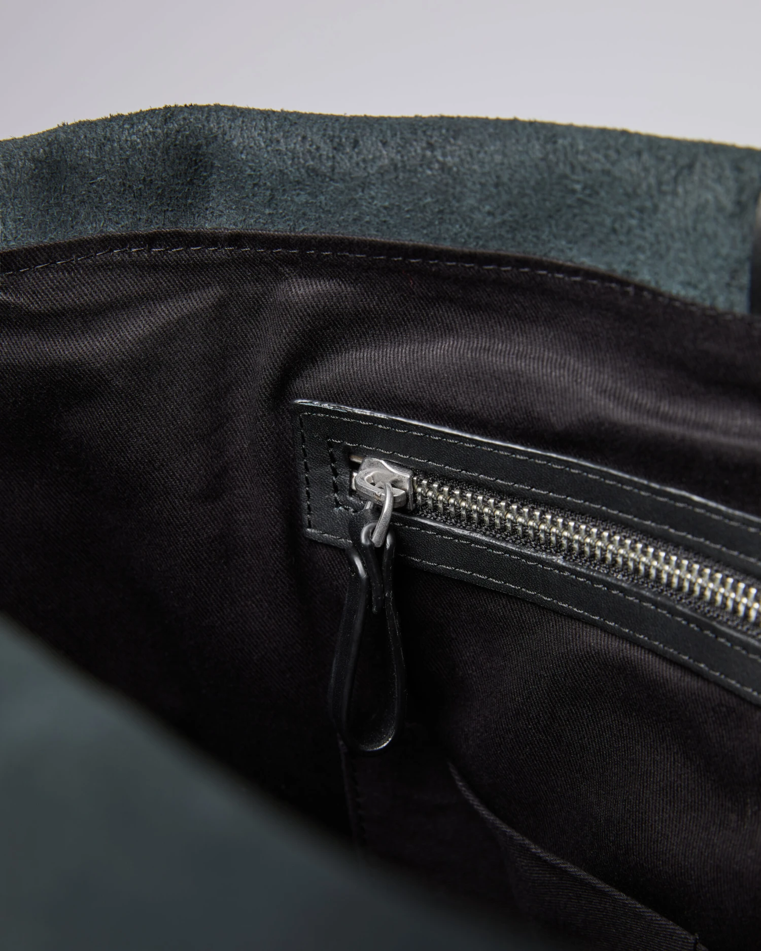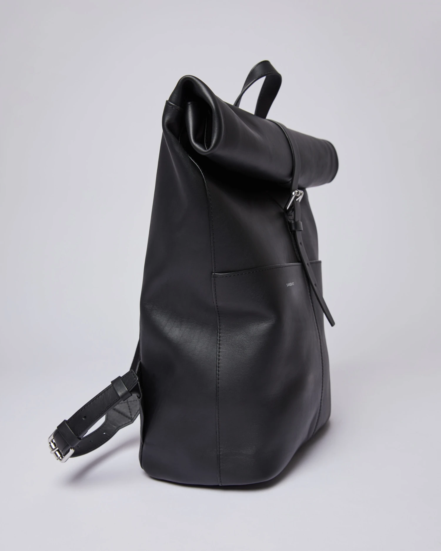 This classic rolltop backpack is crafted from full grain aniline-dyed leather and carries up to 15 L. The bag features a spacious main compartment and 13″ laptop compartment, which is accessible from both inside and outside with zipper closure to keep you organized on the go. A hidden snap button and roller buckle closure gives a timeless yet modern look. One of our all-time favorites.