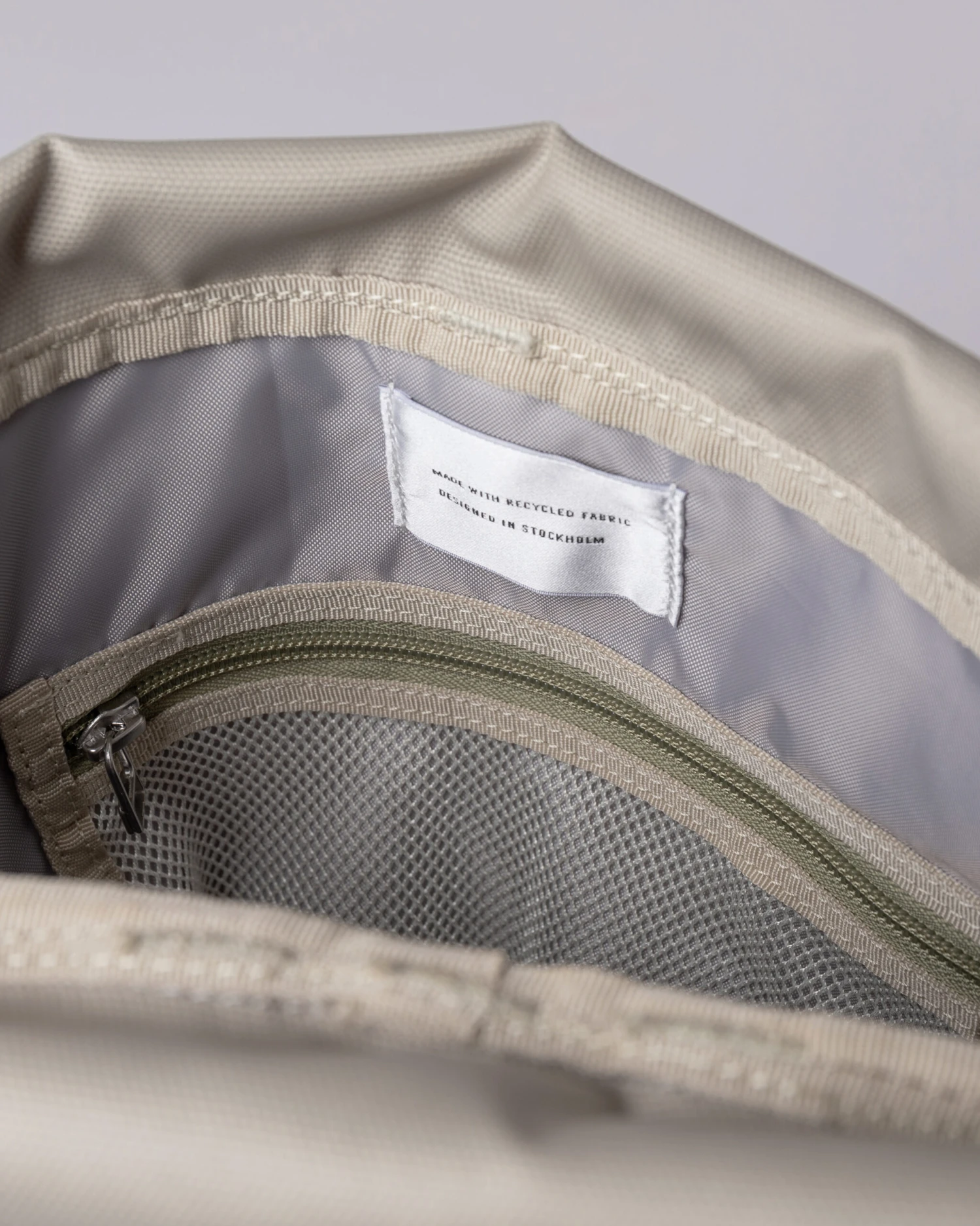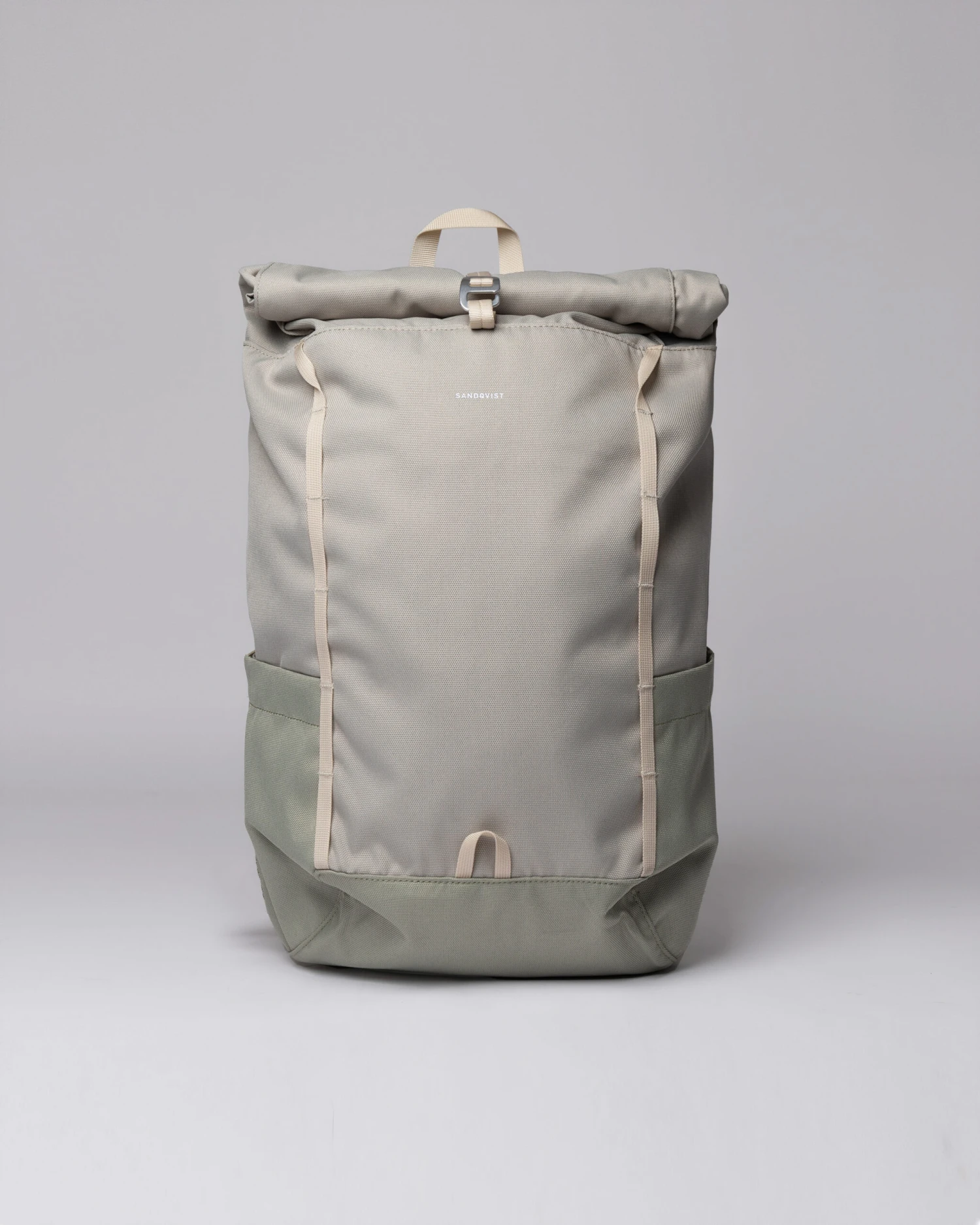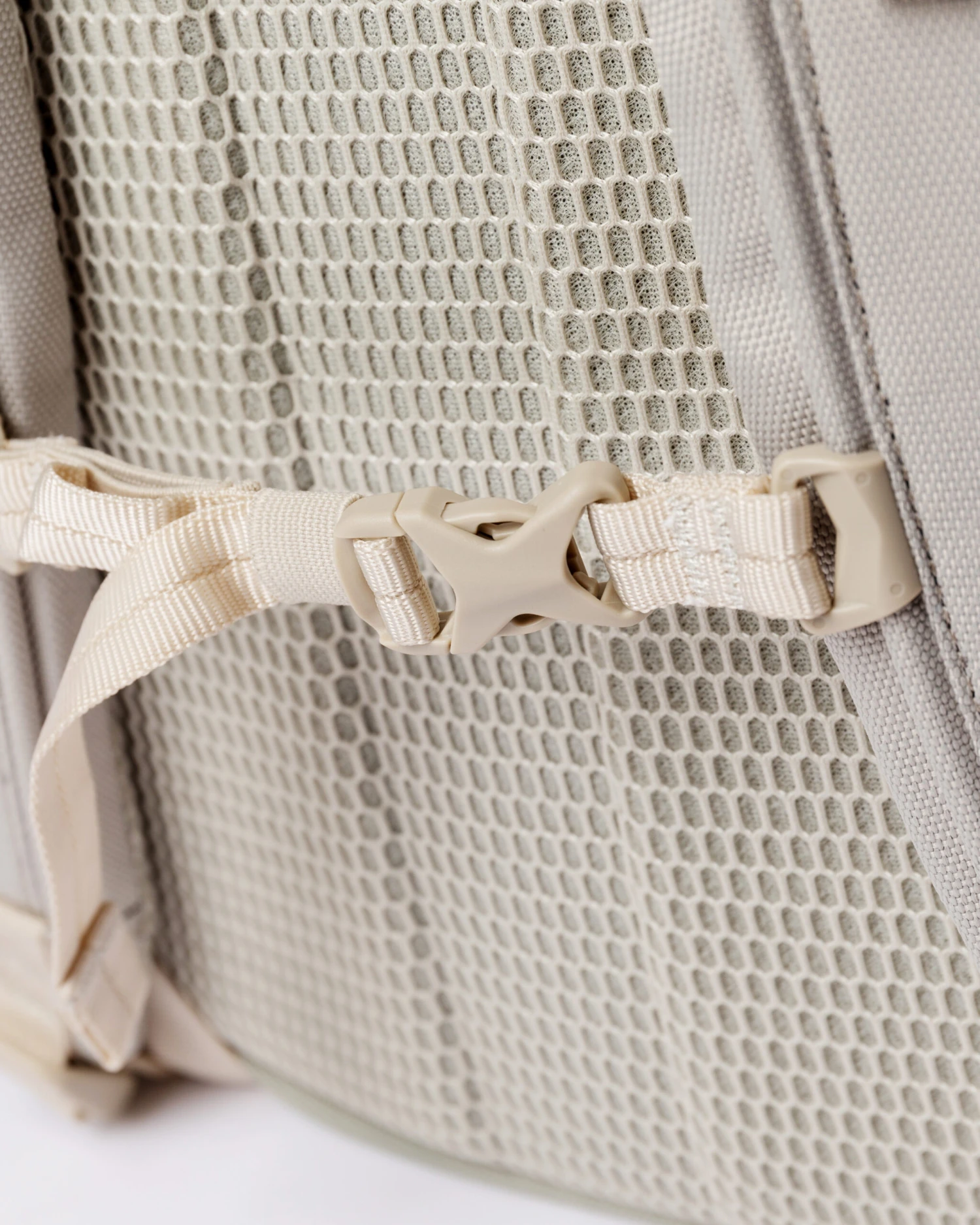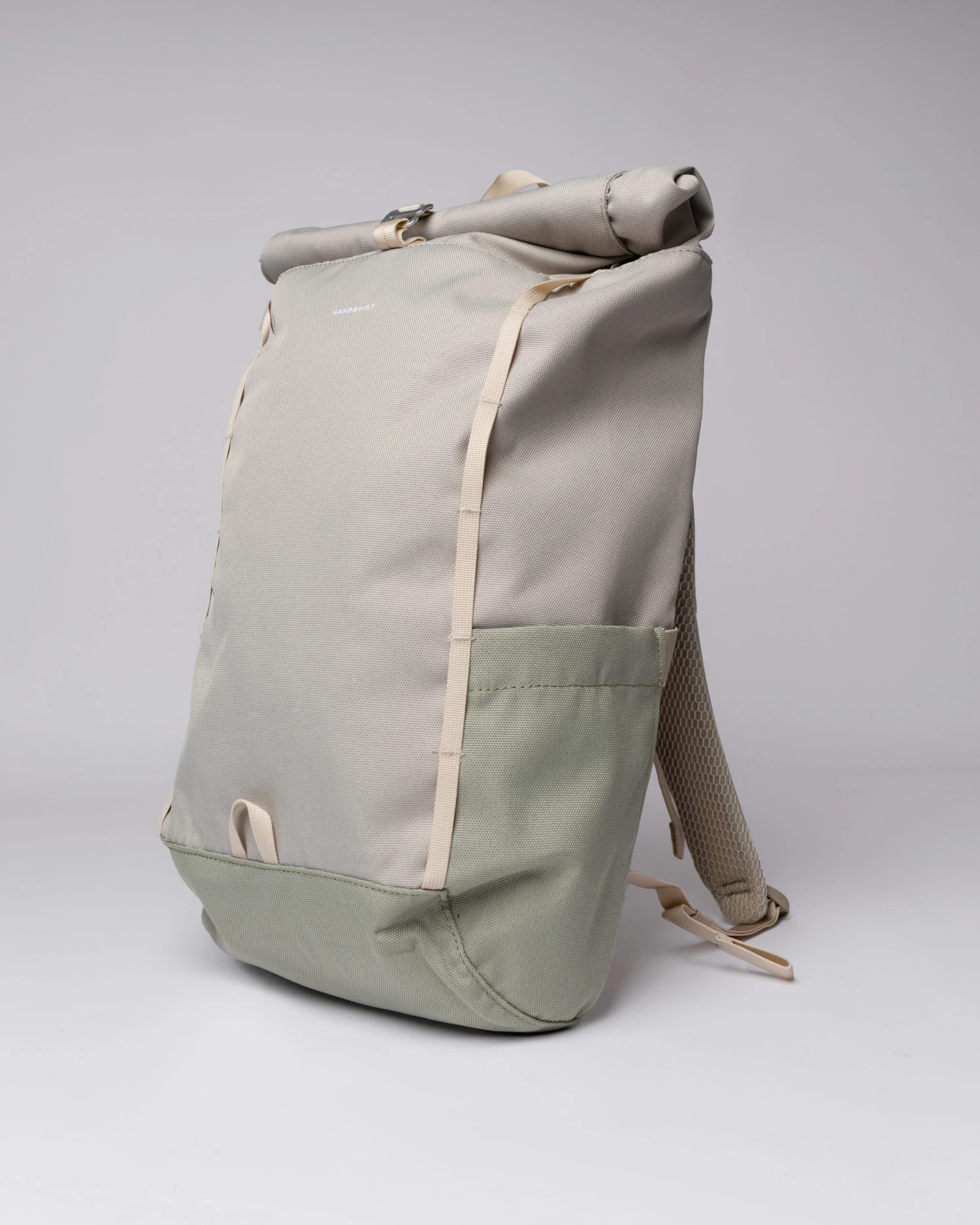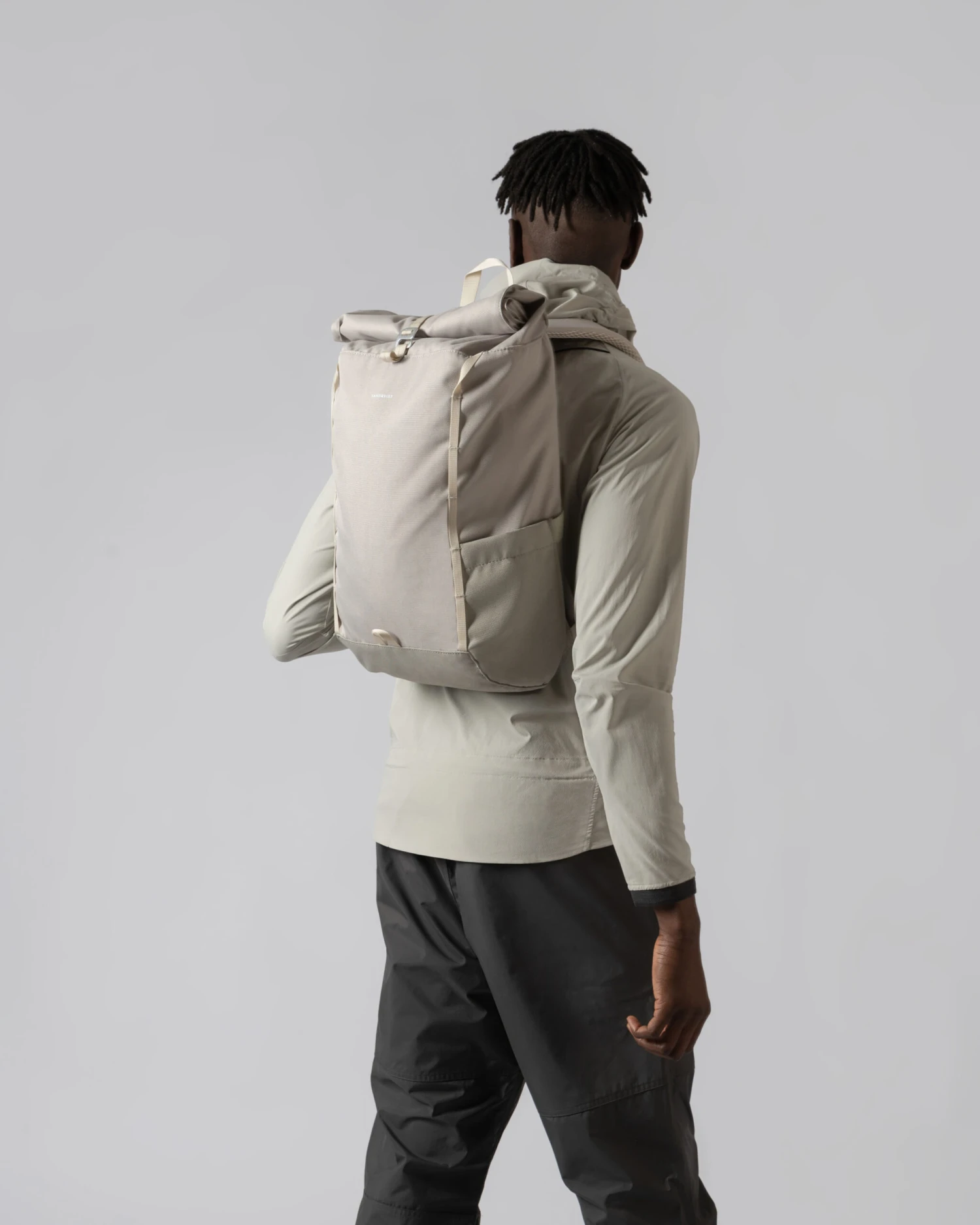 Water-resistant and functional rolltop backpack constructed in 100% recycled polyester. It features a 13″ laptop compartment and can carry up to 15 L.