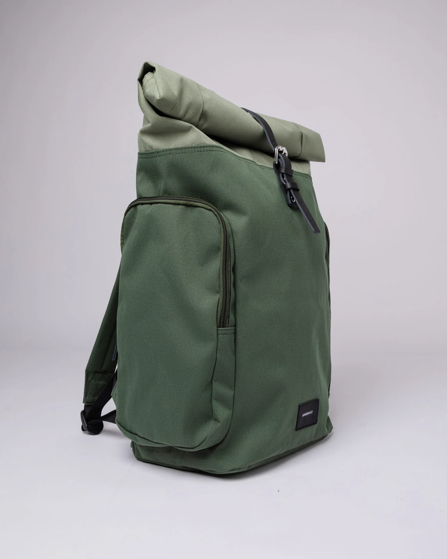 Spacious and water resistant rolltop backpack in 100% recycled polyester. The bag features an inner 16″ laptop compartment, two large outer zipper pockets, a hidden pocket in the rolltop and can carry up to 34 L. Functional and spacious, this backpack is a perfect everyday companion.