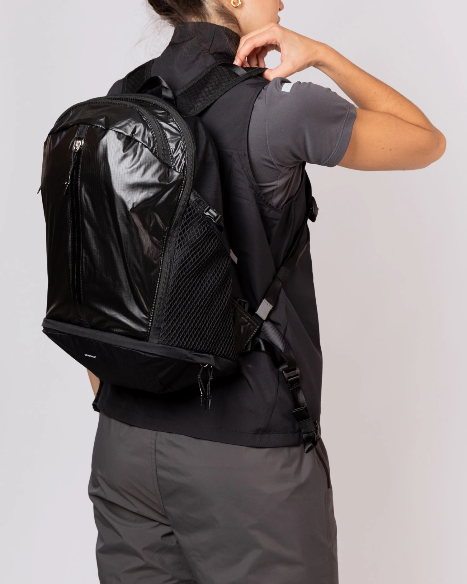 Functional and water-resistant zipper backpack constructed from 100% recycled polyester. A bag that features a 16″ laptop pocket and can carry 25 L.