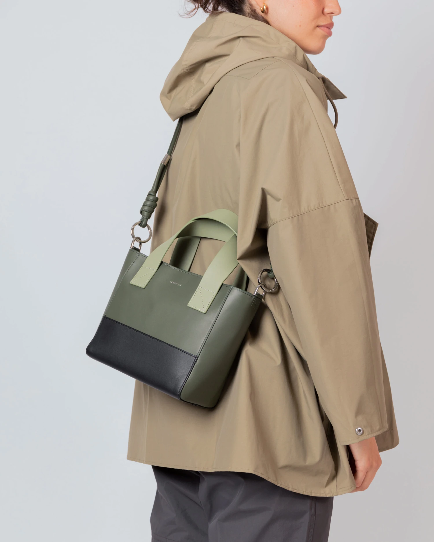 This contemporary hand bag from our Tomorrow series is crafted from full grain aniline-dyed Scandinavian leather. The bag features leather handles and a removable shoulder strap. Use the zipped inner pocket to store small essentials. The drawstring closure lid is made in 100% organic cotton. Boasting a cutting edge approach to design, this mini tote is a modern classic.