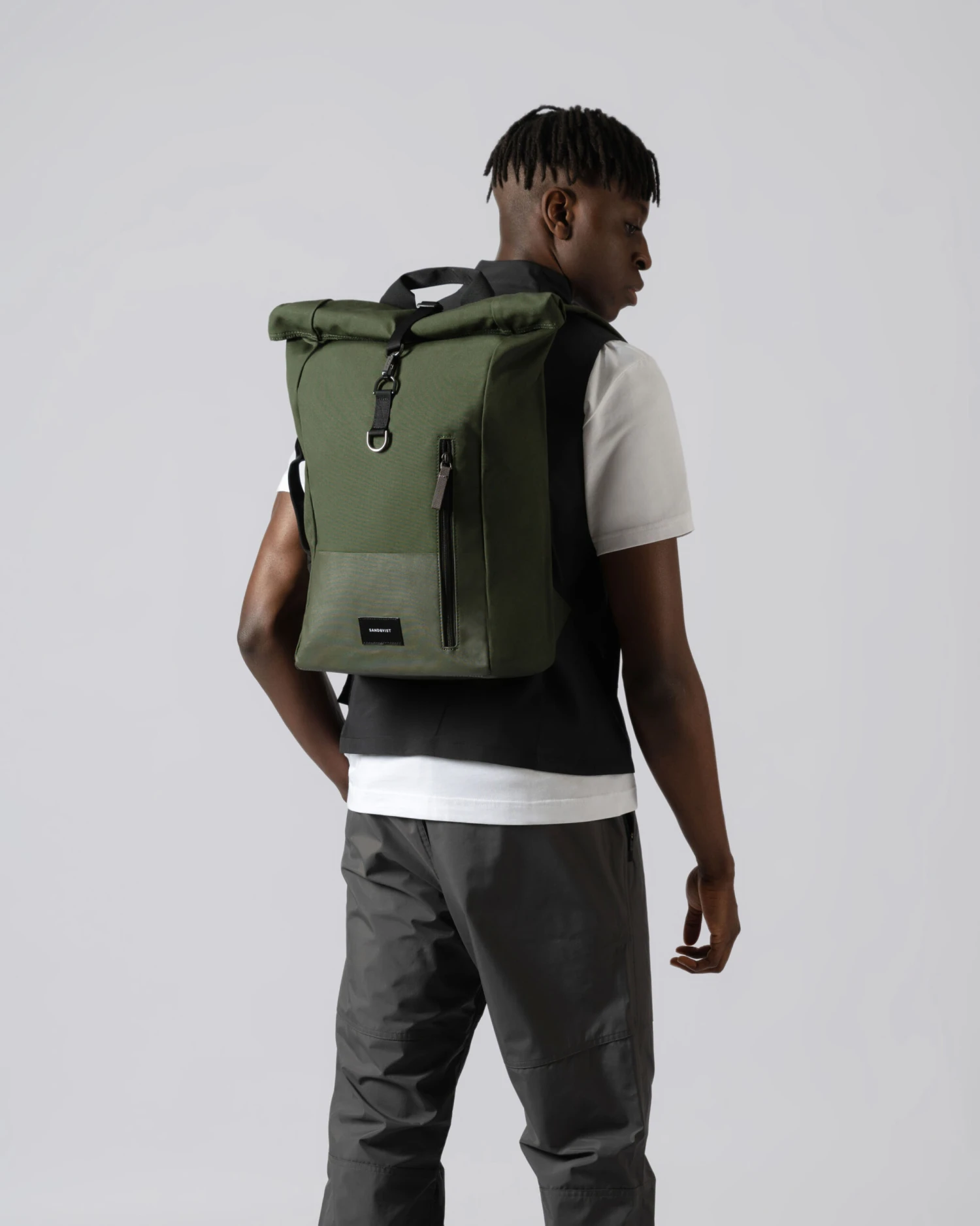 Water-resistant and functional backpack constructed from recycled polyester with a waterproof TPU coating. It features a 15″ laptop compartment and can carry up to 18 L. The webbing is reflective, keeping you visible in the dark. Upgrade you commute with a functional and durable bag that will keep your belongings safe and dry. Check out the bar bag Uno (LINK) for an extra bag that can be fastened to the backpack.