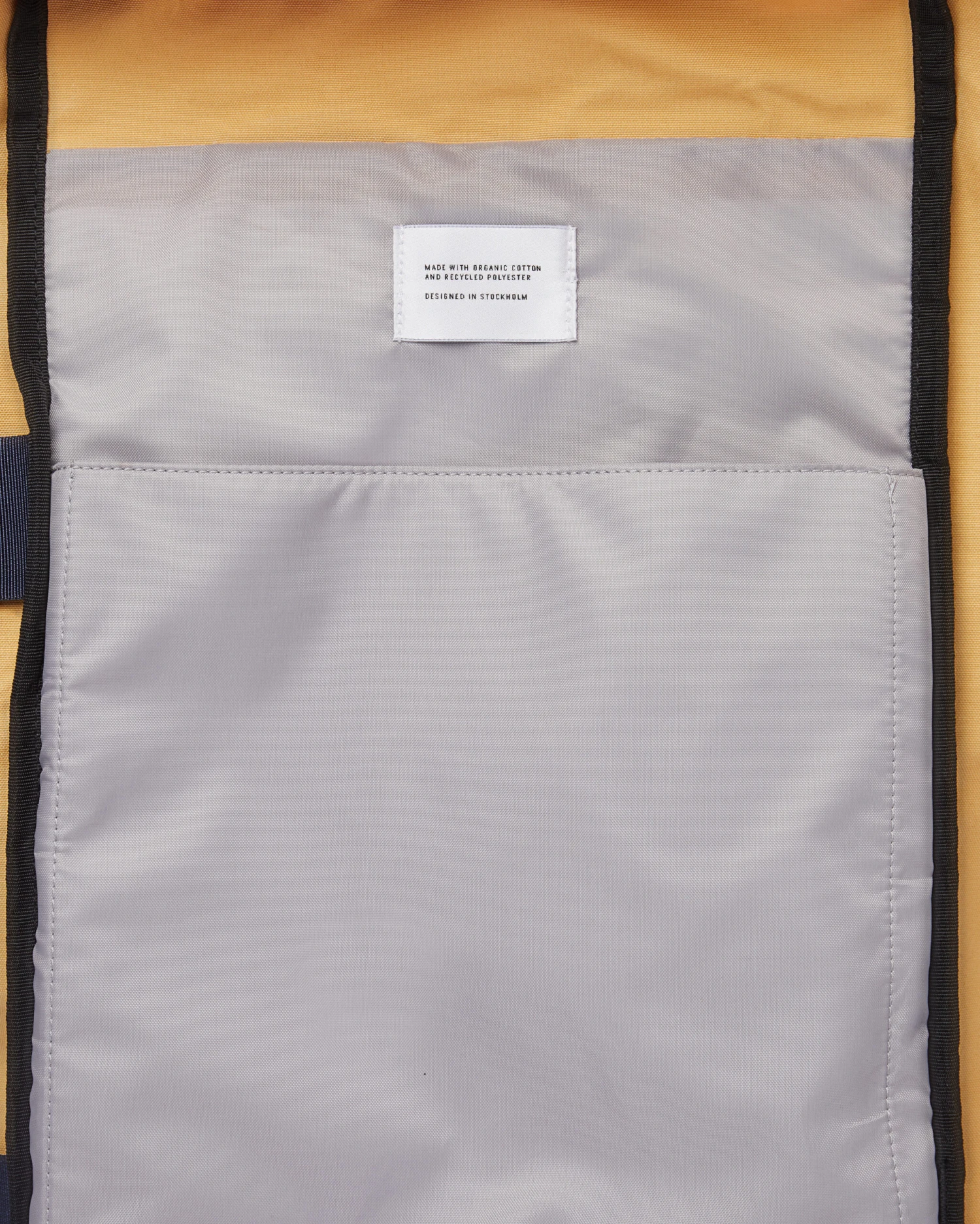 This spacious rolltop backpack from our Ground series is made with organic cotton and recycled polyester. Here updated with a new metal hook closure, making it 100% vegan. The bag features a 15″ laptop compartment and can carry 16 L. Fill the bag all the way up to the rolltop zipper closure and you can fit 23 L. Functional and stylish, this backpack is a perfect everyday companion.