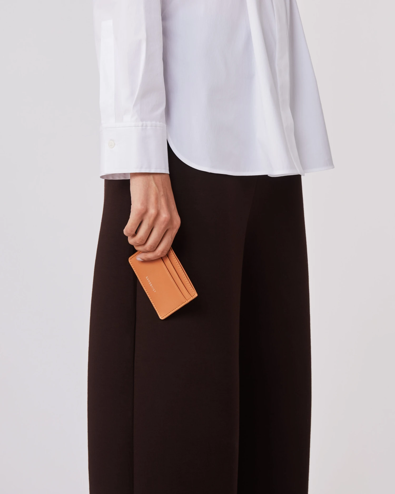 This card holder is crafted from full grain aniline-dyed Scandinavian leather. It features five card slots. Personalize your style and add some beautiful detail to your look with a high-quality leather card holder that will age beautifully over time.