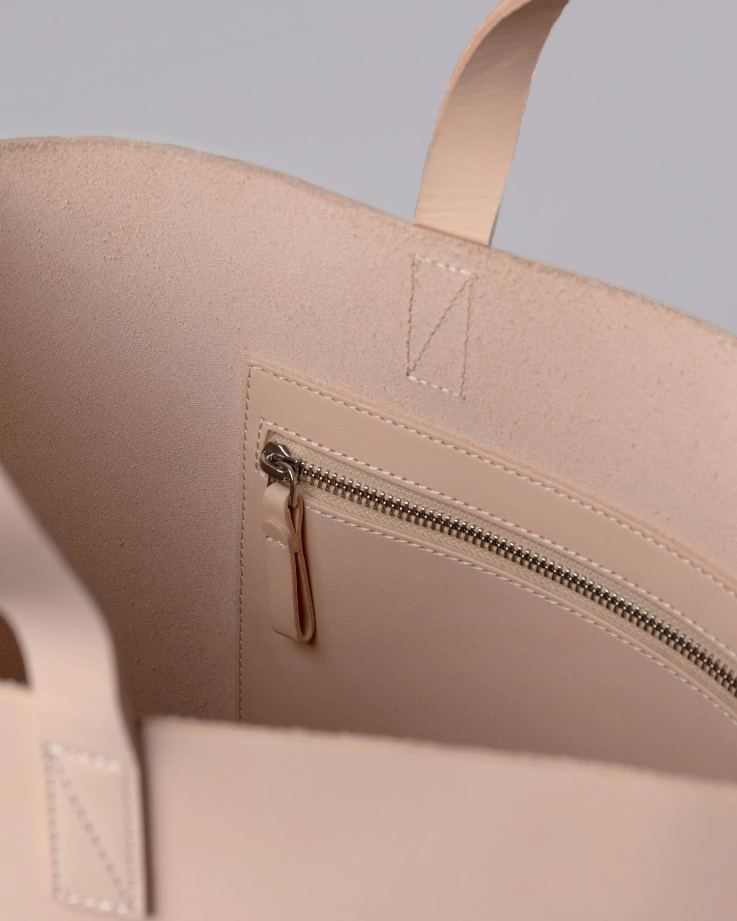 Sleek tote bag made in high quality Scandinavian leather. The bag is designed with an inner zipper pocket and can carry up to 10 L. This tote bag could be your new everyday companion.