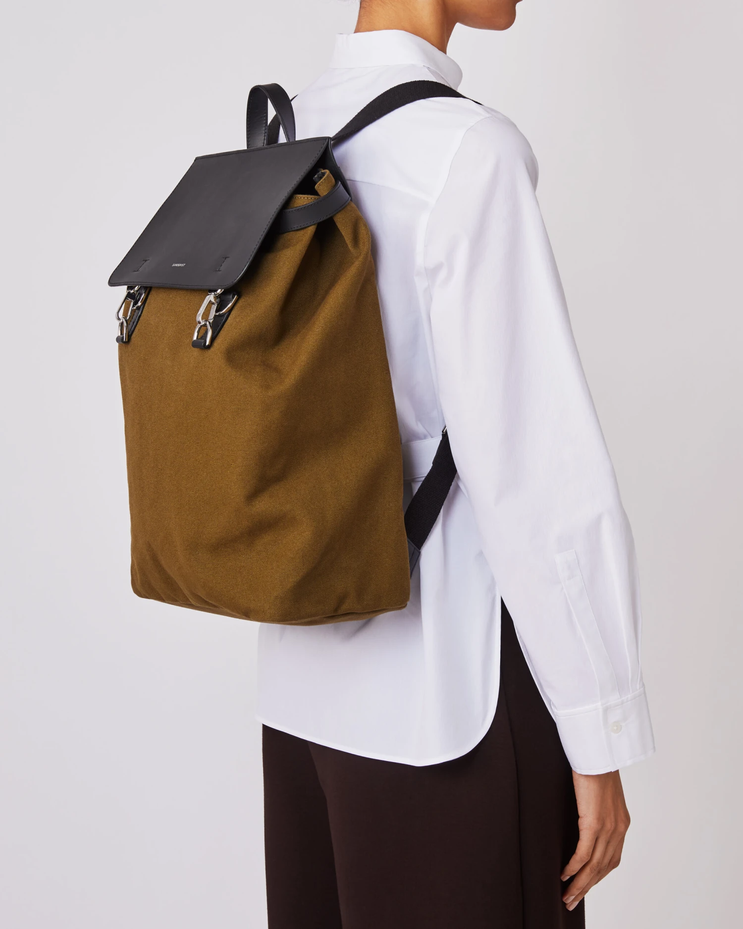 This high-quality, spacious backpack from our Classics series, now updated with metal hook closure, is made with organic cotton canvas and high-quality leather. It can carry up to 18 L. An inner laptop compartment fits most 15″ models. Functionality combined with sophisticated design make this the perfect everyday bag for work as well as leisure.