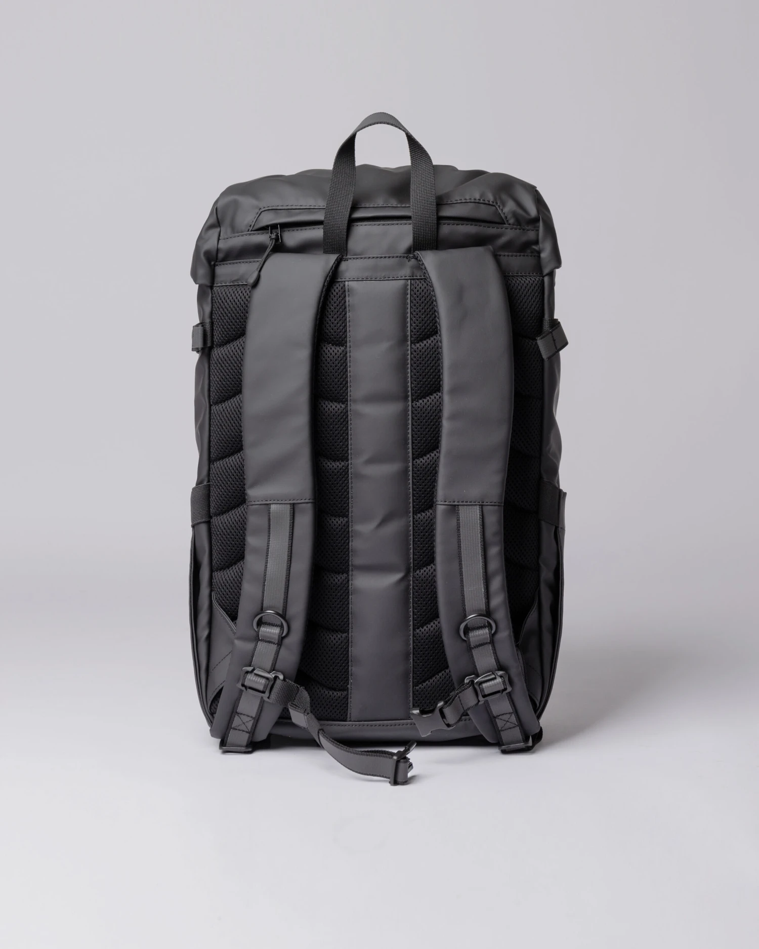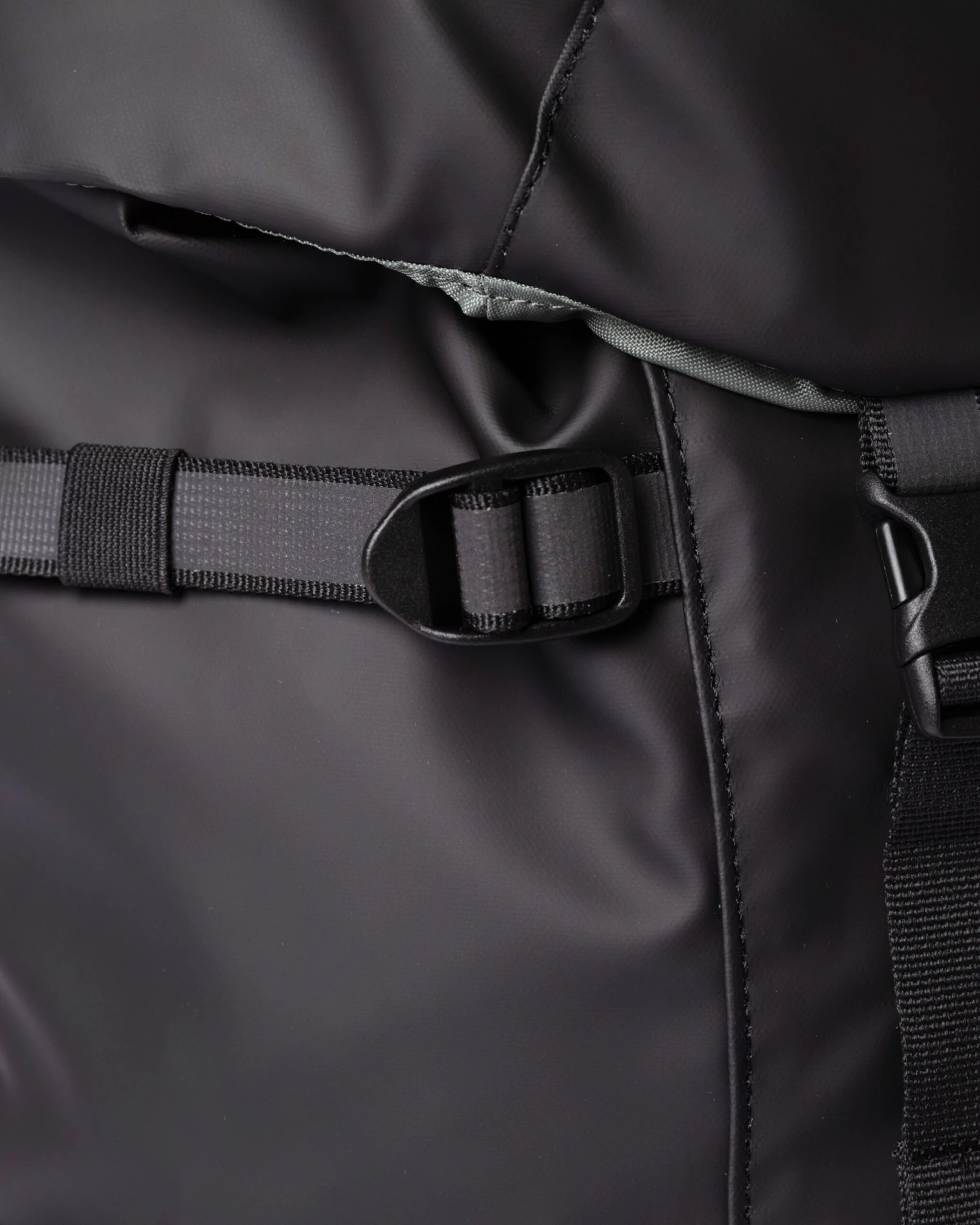 Water-resistant and functional backpack constructed from recycled polyester with a waterproof TPU coating. It features a 15″ laptop compartment and can carry up to 18 L. The webbing is reflective, keeping you visible in the dark. Upgrade you commute with a functional and durable bag that will keep your belongings safe and dry. Check out the bar bag Uno for an extra bag that can be fastened to the backpack.