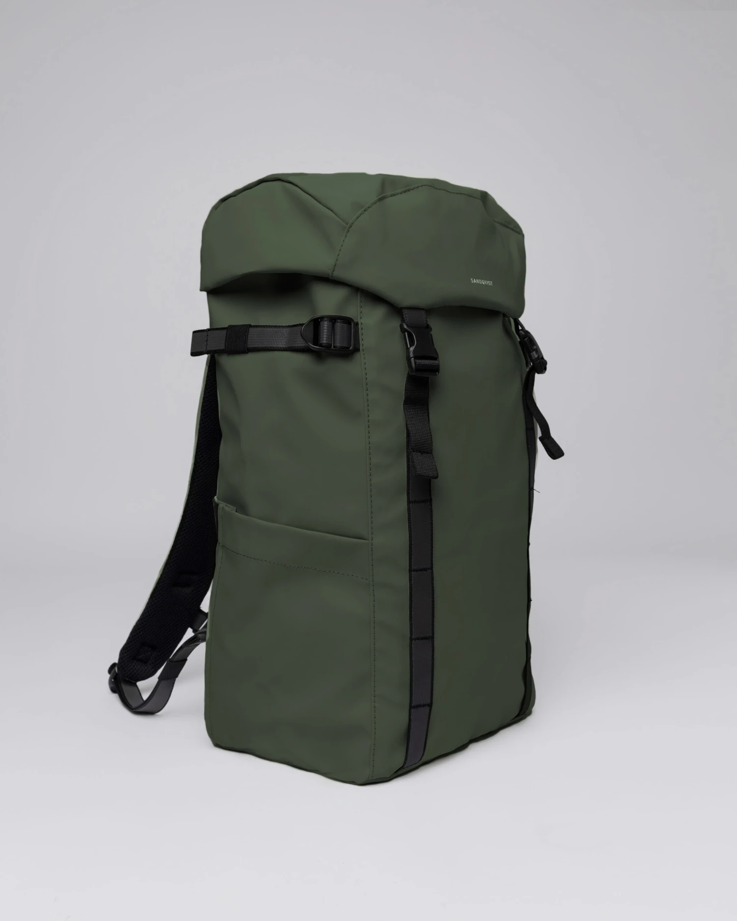 Water-resistant and functional backpack constructed from recycled polyester with a waterproof TPU coating. It features a 15″ laptop compartment and can carry up to 18 L. The webbing is reflective, keeping you visible in the dark. Upgrade you commute with a functional and durable bag that will keep your belongings safe and dry. Check out the bar bag Uno for an extra bag that can be fastened to the backpack.