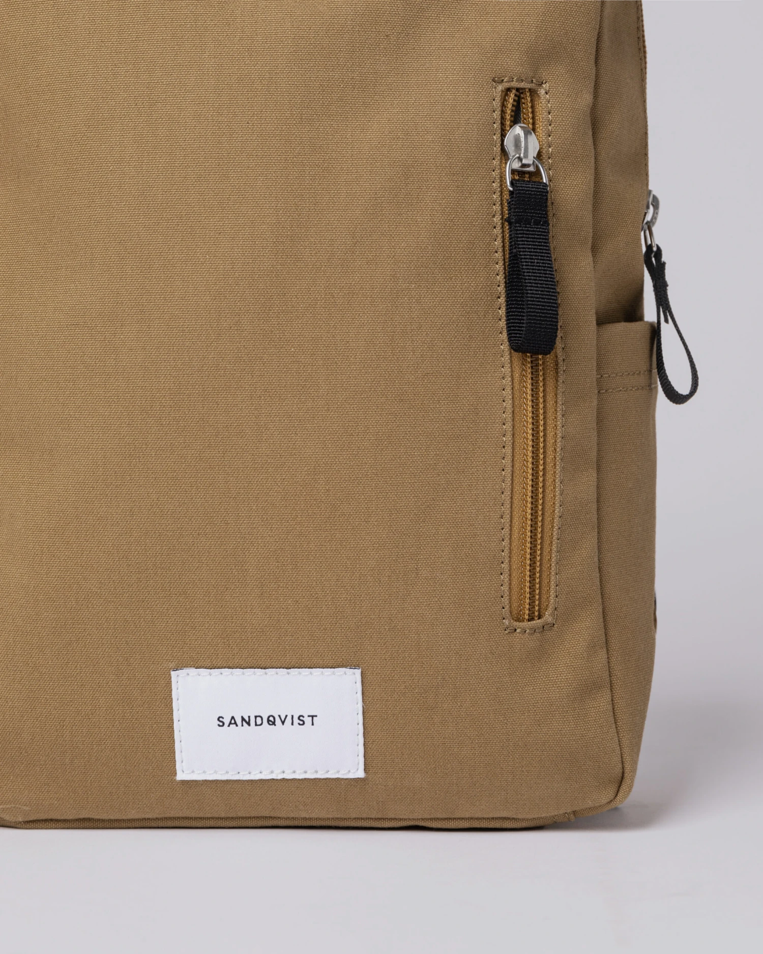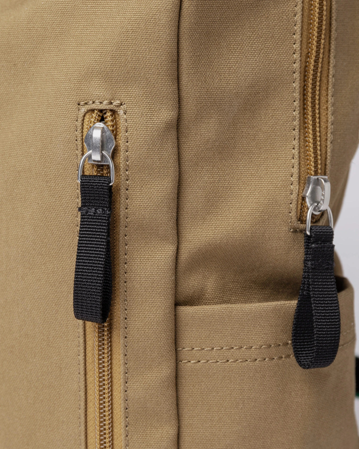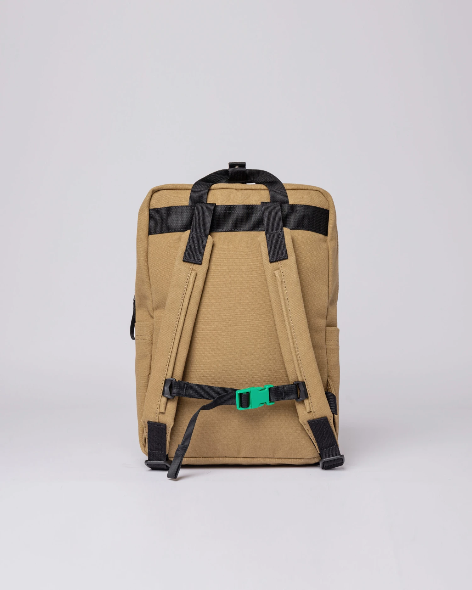 Backpack for kids made of surplus materials in an organic cotton and recycled polyester mix, developed in collaboration with Skansen in Stockholm. The bag is designed with a green quick release safety buckle, which releases if the child gets caught in the bag. The bag features an inner and outer zip pocket and two side pockets. The simple zipper opening, 8 L capacity, and functional pockets make this bag a perfect bag for preschool and adventures for children between the ages of 2-6.