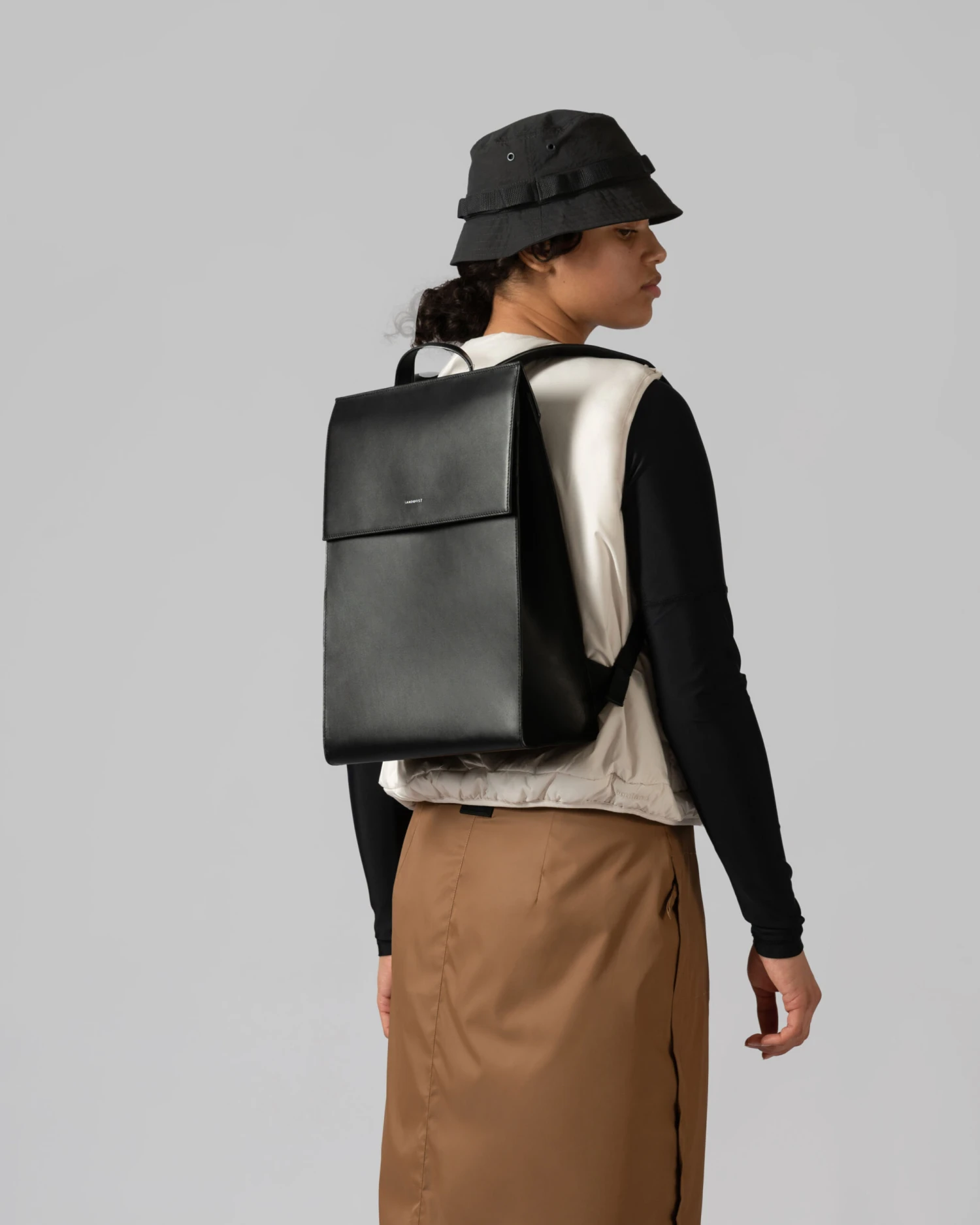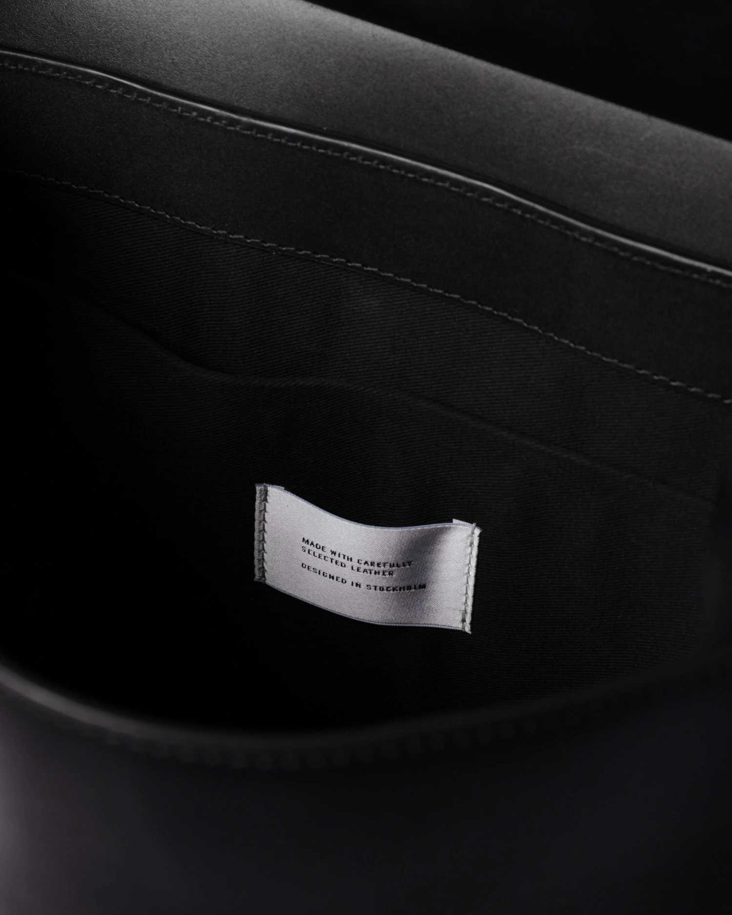 Sleek backpack made in high quality Scandinavian leather. The bag is designed with a 14″ laptop sleeve, can carry up to 8 L and features a breathable backplate in a polycotton twill made from 58% organic cotton and 42% recycled polyester. Comfortable and modern, this backpack could be your new everyday companion.