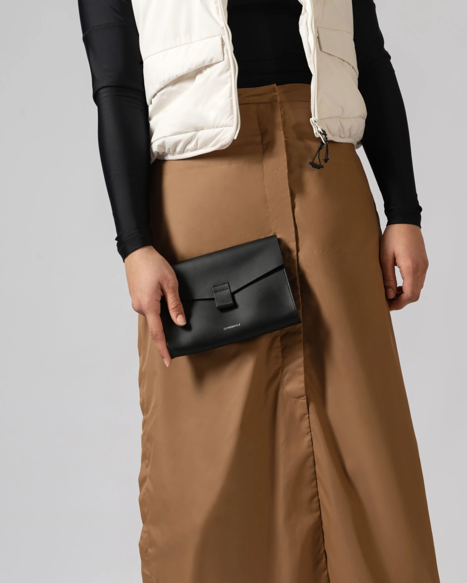 Sleek pouch in full grain aniline-dyed Scandinavian leather. The pouch has a push button opening and functions as a beautiful accessory to any outfit. You can also use it as an elegant organizer to place in your bag when you want to keep track of those smaller items.