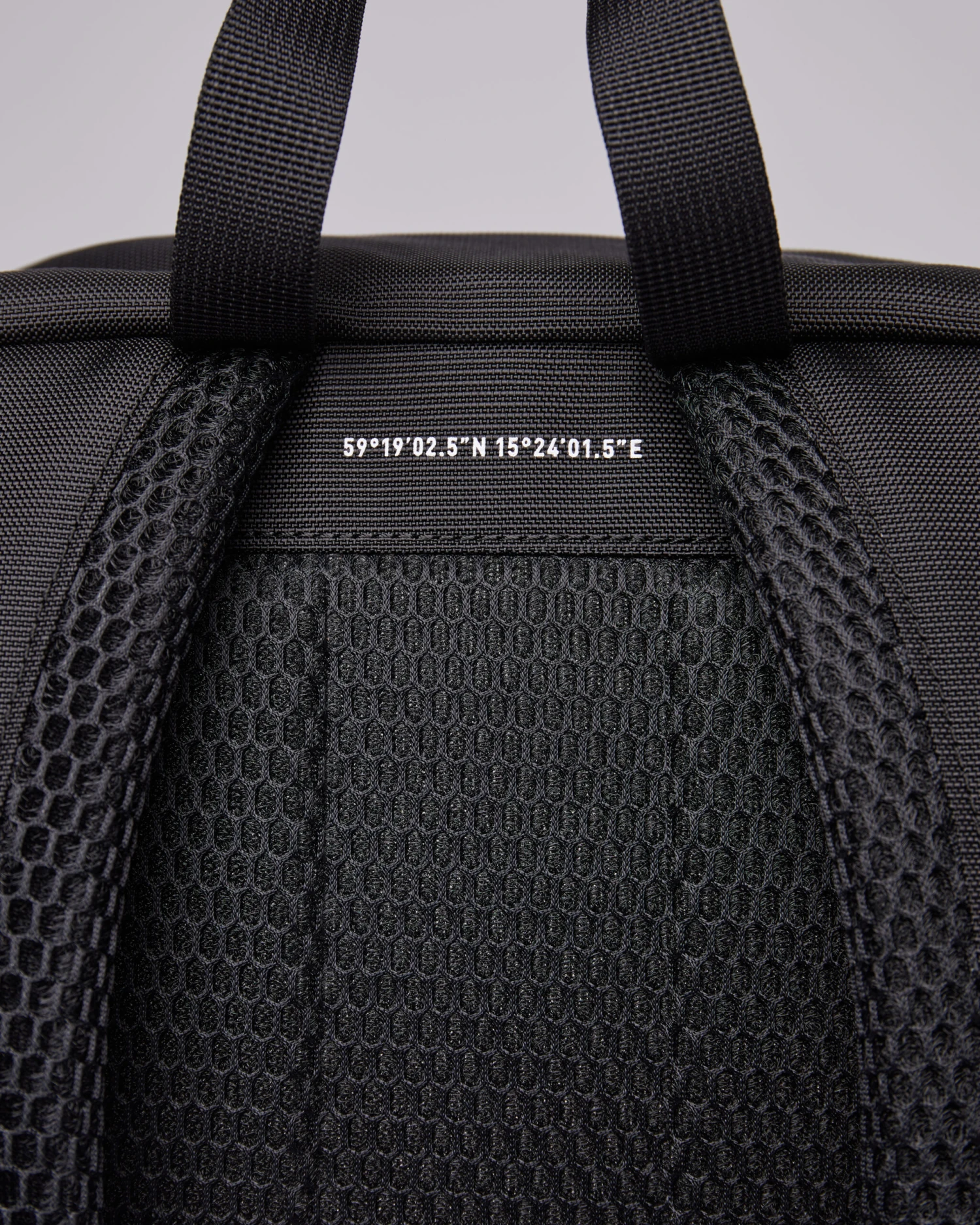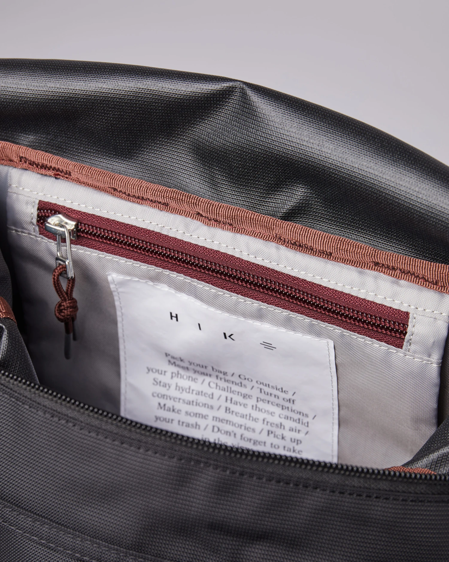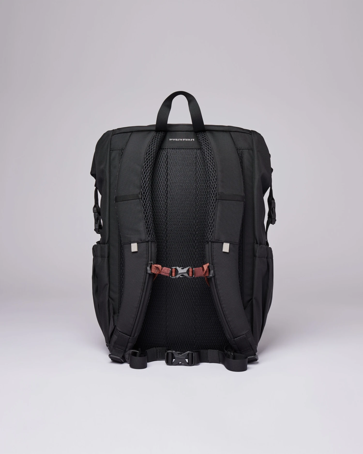High-performance backpack. Functionality includes gear loops, cord detailing, compressions straps, side pockets, a removable hip belt and a two-way rolltop and buckle closure. Expertly crafted from sustainable fabrics, with technical details and function at its core.