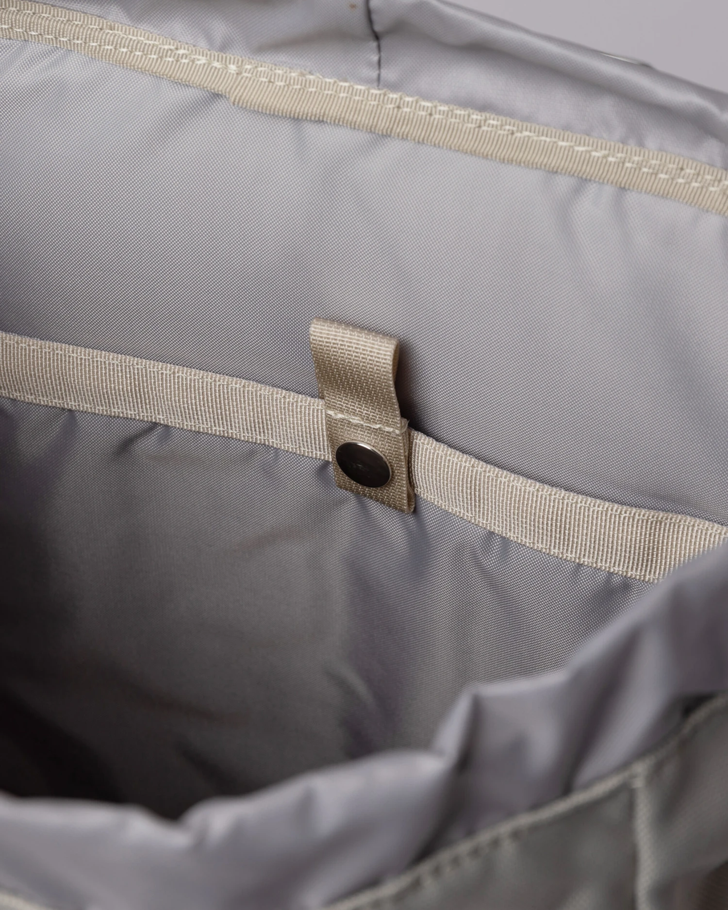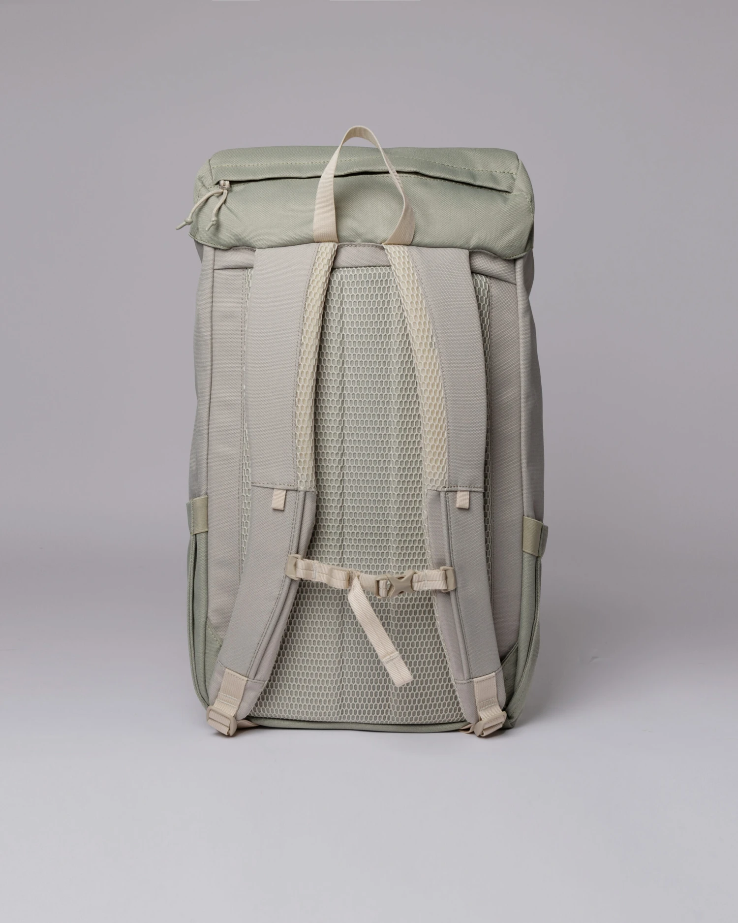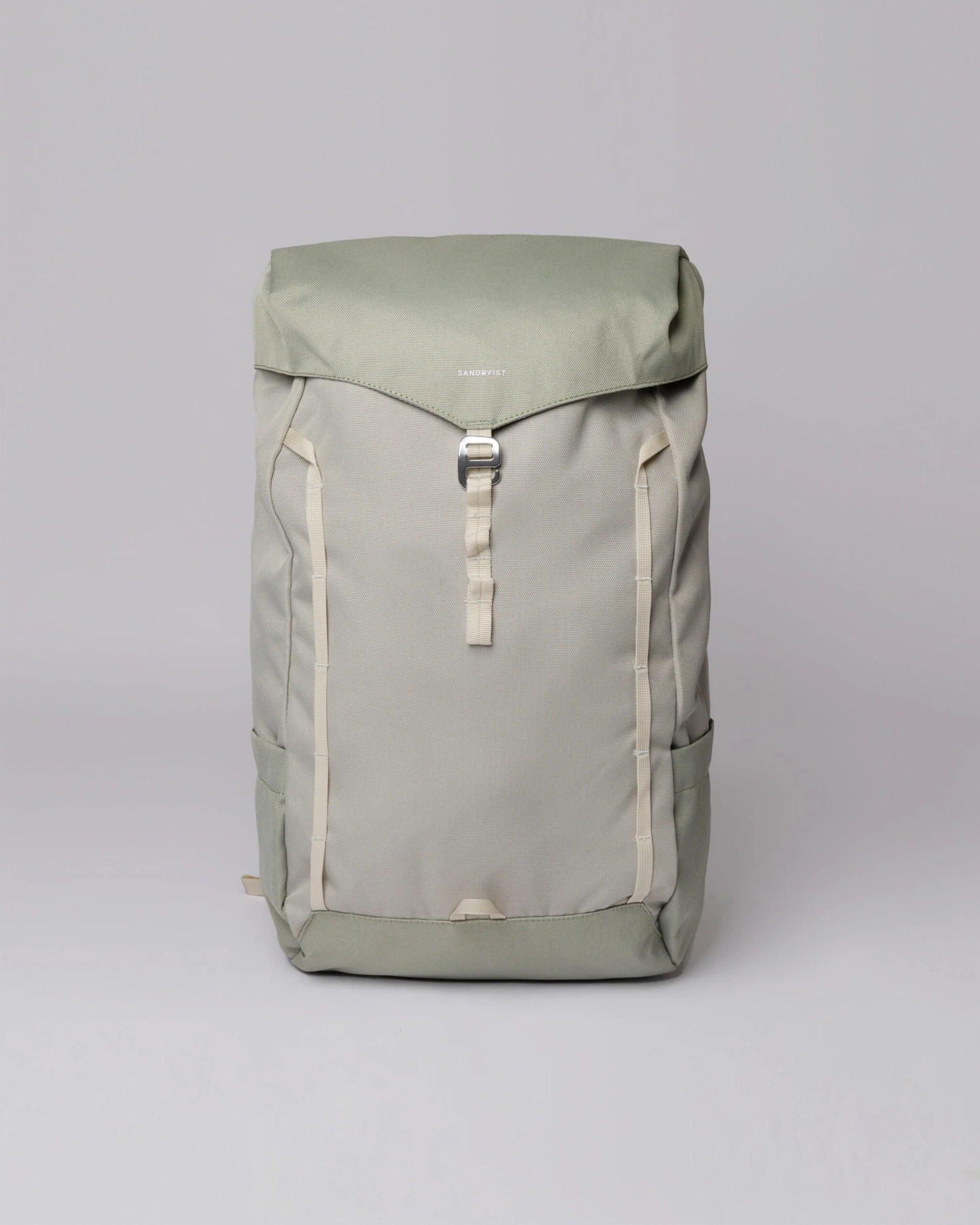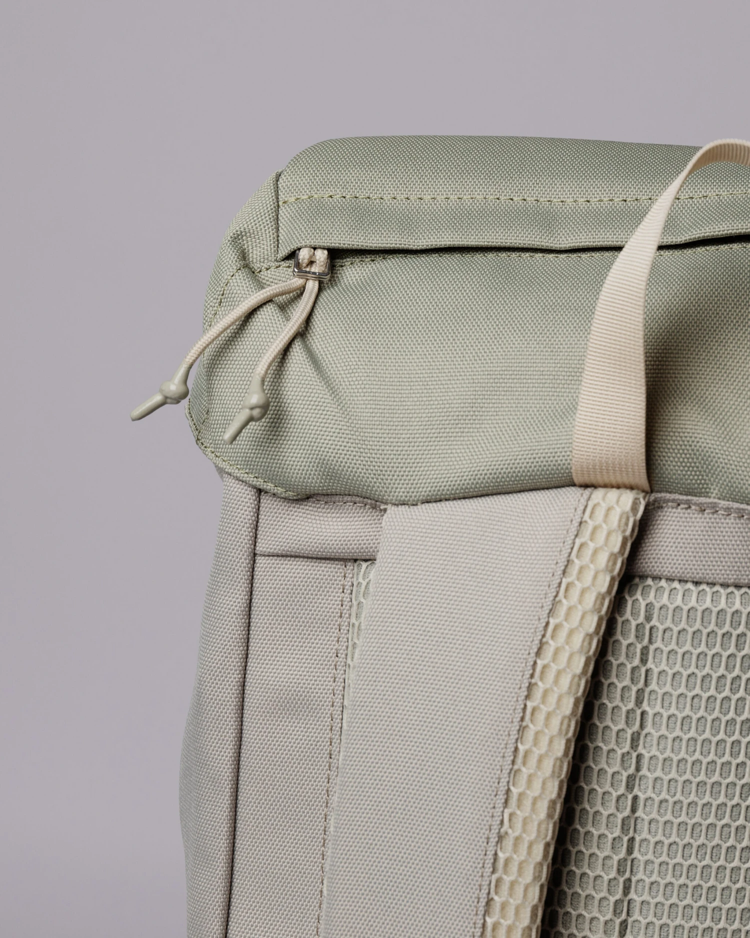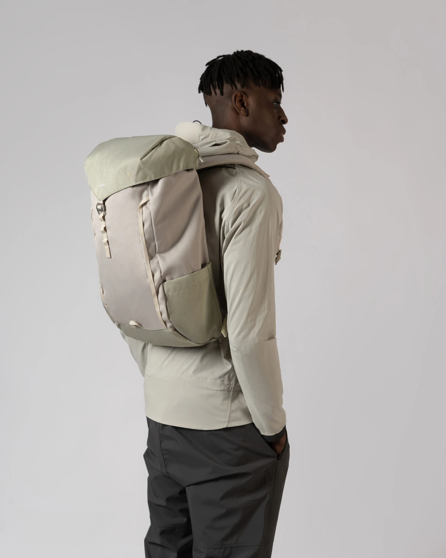 Water-resistant and spacious backpack constructed in 100% recycled polyester. It features a 16″ laptop compartment and can carry up to 19 L.