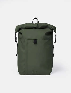The Konrad Rolltop Backpack from Sandqvist is a water-resistant rolltop backpack crafted from recycled polyester with a waterproof TPU coating.