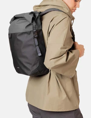 The Konrad Rolltop Backpack from Sandqvist is a water-resistant rolltop backpack crafted from recycled polyester with a waterproof TPU coating.